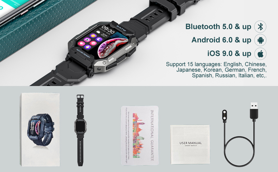 - ⌚【Compatibility】 This smartwatch for men is compatible with Android 6.0 or iOS 9.0 or later, not for tablets or laptops. Fits most mobile devices on the market.