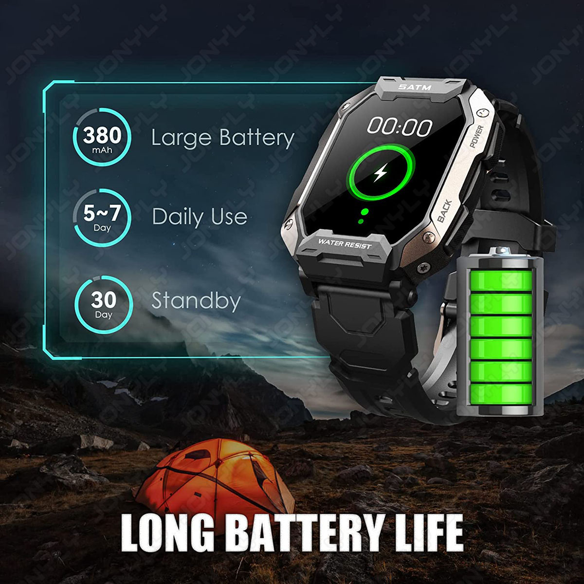 ⌚【Perfect for Explorers】Special composite materials and metal shell makes this smart watch for men pass dozens of military standard tests, the tactical watch is waterproof, corrosion-resistant, drop-resistant and shock-resistant. The military watch can withstand extreme conditions with heat resistance to 70°C, cold resistance to -40°C, 240 hours in wet environments and 96 hours in salt spray, making it a must-have for outdoor sports and exploring.
