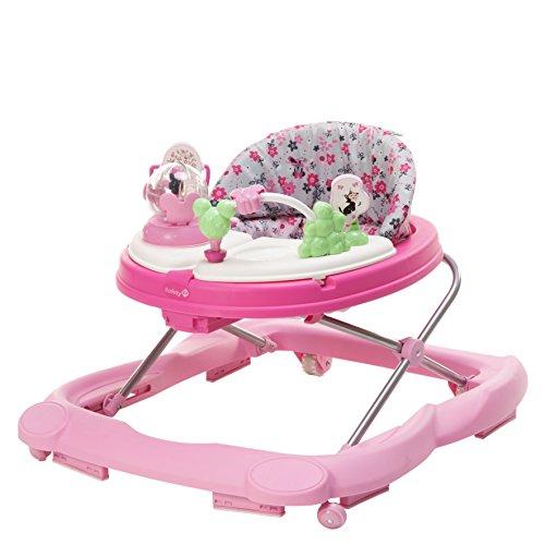 Make your child's first steps fun and easy with the Disney Baby Garden Delight Minnie Mouse Music and Lights Baby Walker with Activity Tray. This adjustable developmental baby walker featuring Disney's Garden Delight and Minnie Mouse pattern has a wide, extra-stable base and three different height settings to provide the best fit for your child. With four fun Minnie Mouse-themed toys, this baby walker includes a music module that plays 12 different songs. The baby walker's sturdy wheels work equally well on floors or carpets, with grip strips that help reduce movement on uneven surfaces. Cleanups are quick and easy with this baby walker's machine-washable padded seat and easy-wipe snack tray. Fold the baby walker quickly and easily for storage or travel, perfect for visits at home or away with friends and family. This baby walker comes with a one-year limited warranty. Requires two AA batteries (not included). Shopping for baby doesn’t have to be an ordinary task it can be a joyful discovery that starts with Disney Baby and ends in your nursery, living room, and every place you interact with your little one. Disney Baby takes pride in helping families connect by offering apparel, gear, toys, play mats, bedding and other items that inspire every moment of the day.