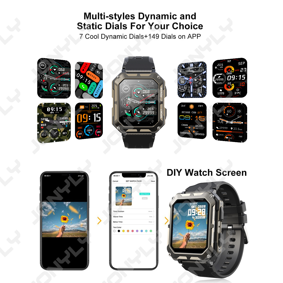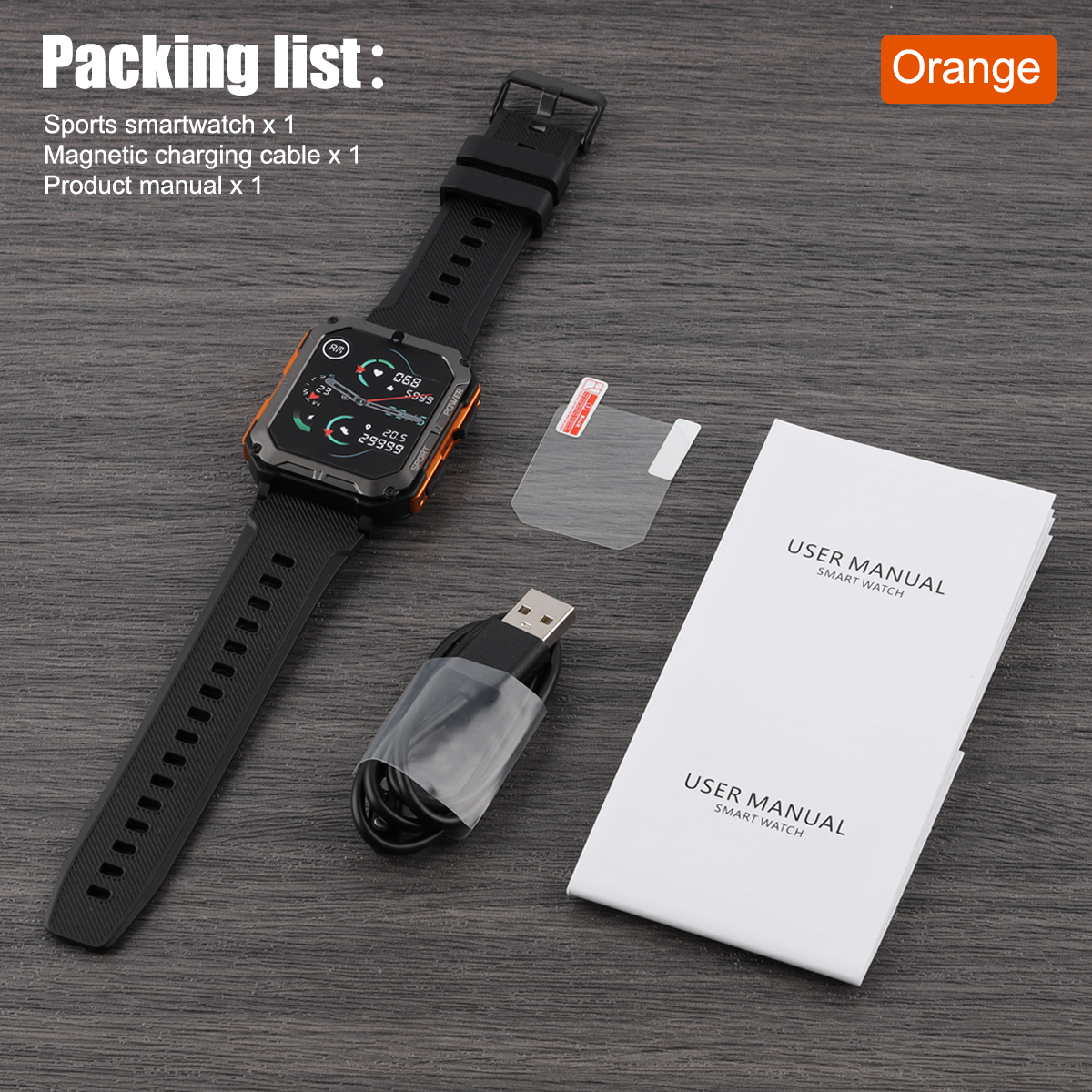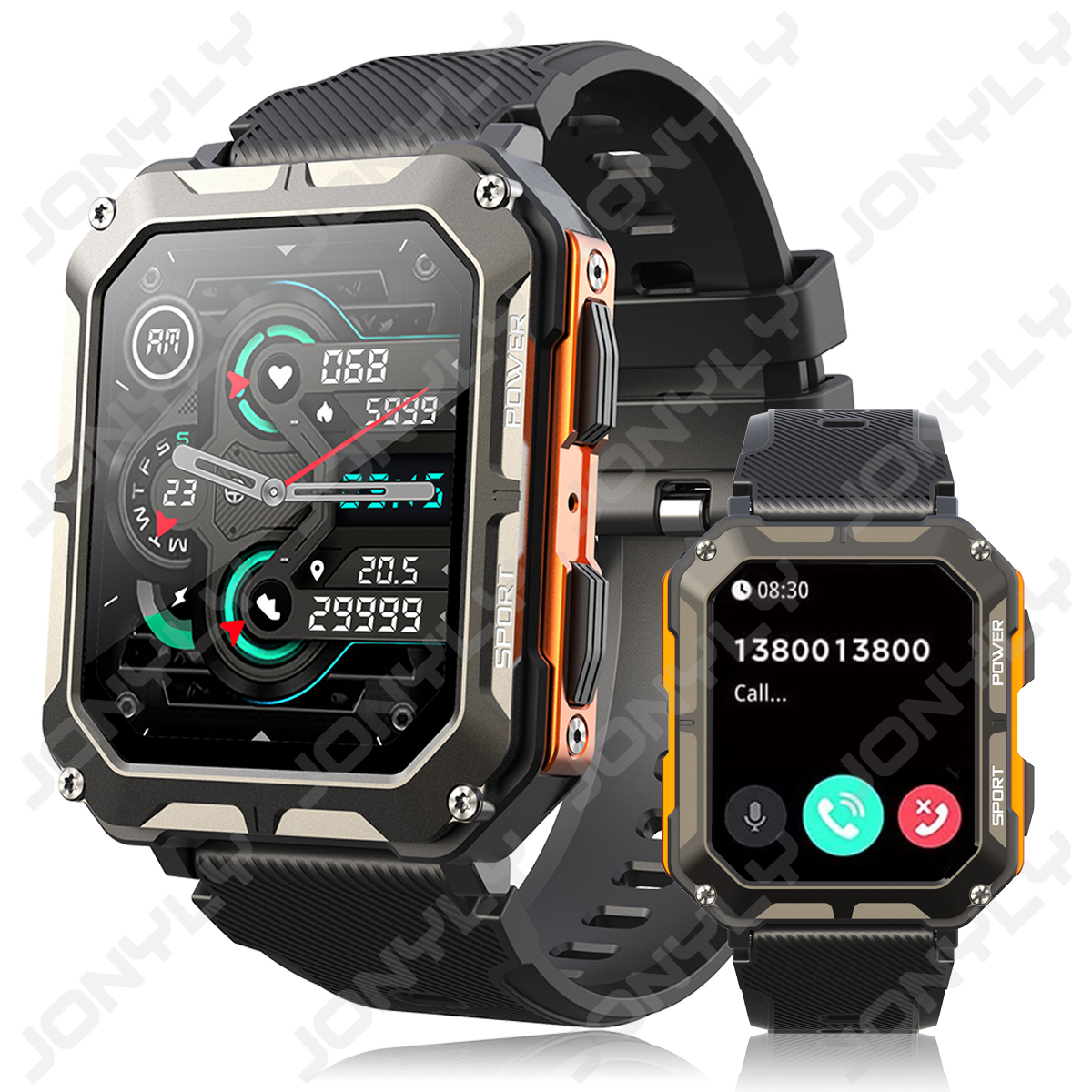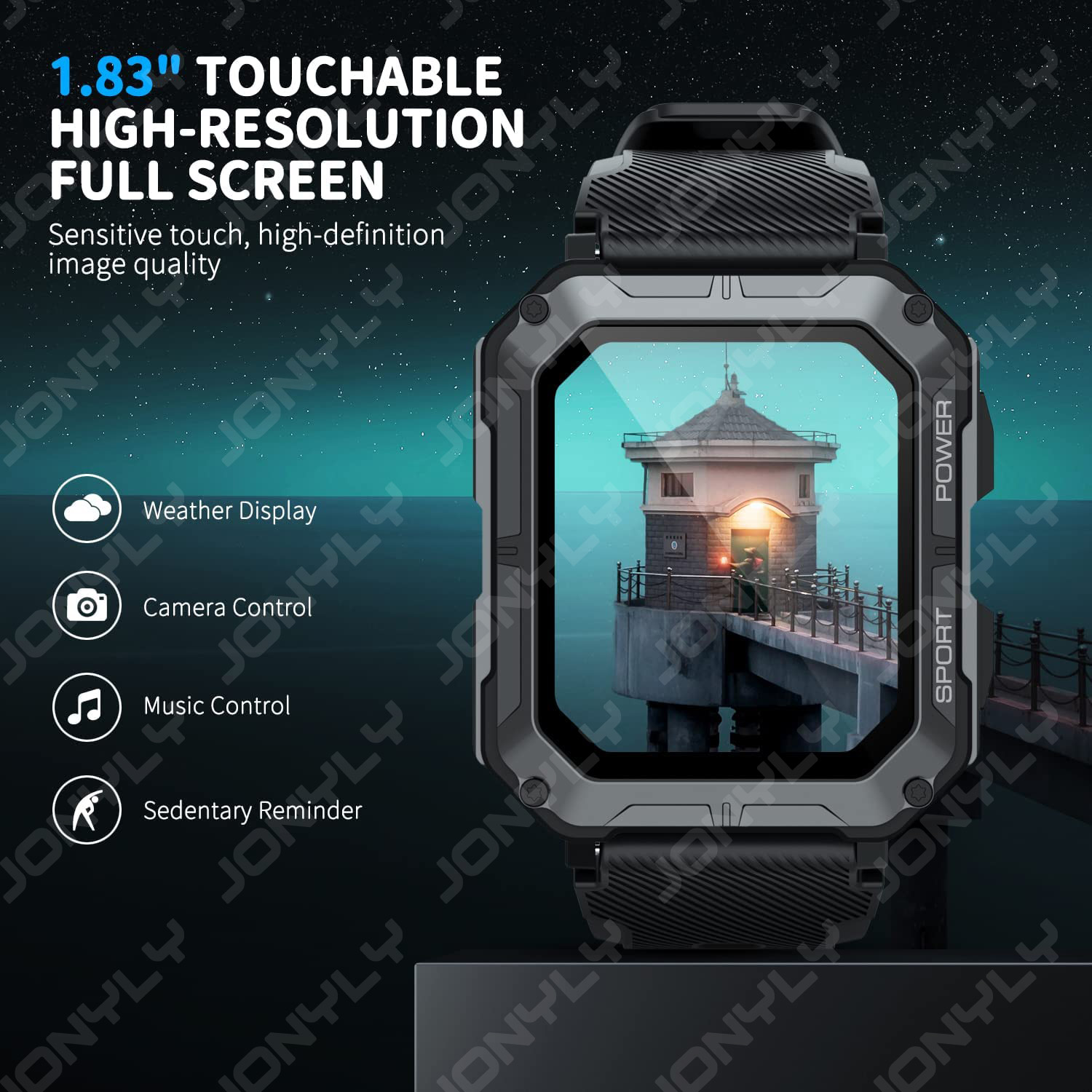 - ⌚【Perfect for Explorers】Special composite materials and metal shell makes this smart watch for men pass dozens of military standard tests, the tactical watch is waterproof, corrosion-resistant, drop-resistant and shock-resistant. The military watch can withstand extreme conditions with heat resistance to 70°C, cold resistance to -40°C, 240 hours in wet environments and 96 hours in salt spray, making it a must-have for outdoor sports and exploring.