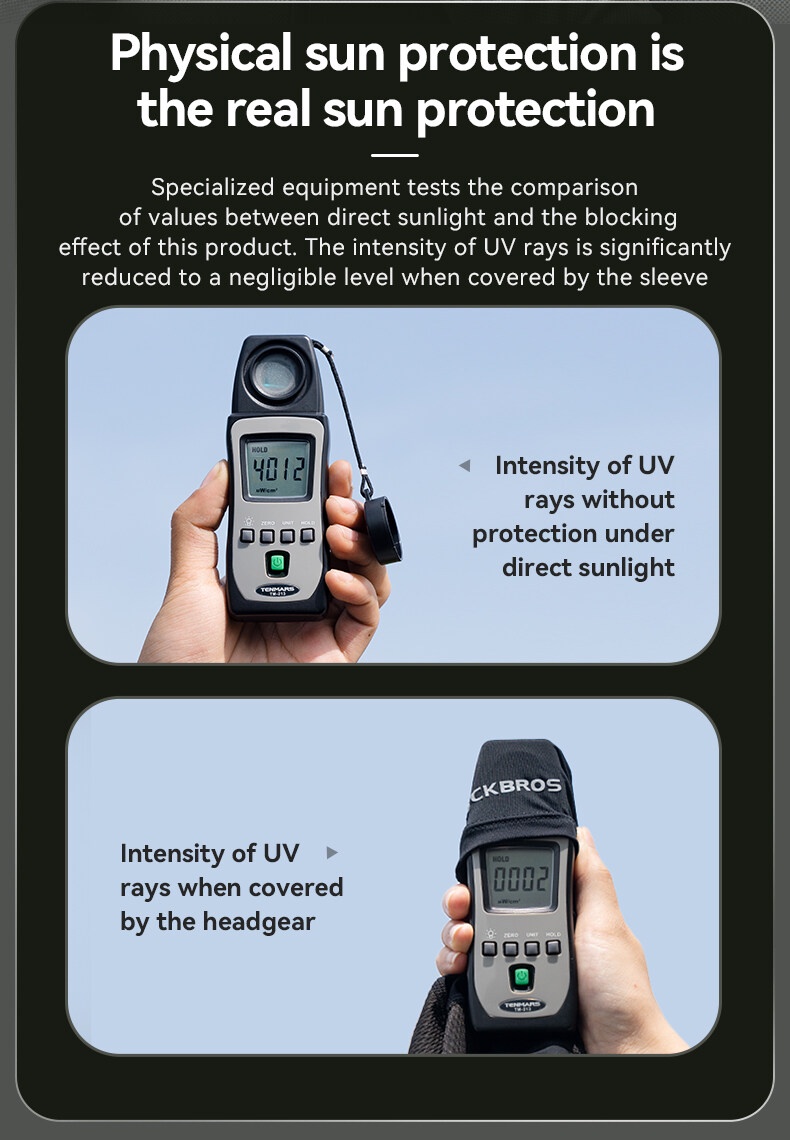 Features: Effective sun protection: UPF50+, UVA<5% Breathable: Designed not to cover the mouth and nose, keep breathing comfortably during riding Refreshing and comfortable: ice silk fabric, silky touch, not stuffy Quick-drying: light mesh on the top to accelerate heat dissipation