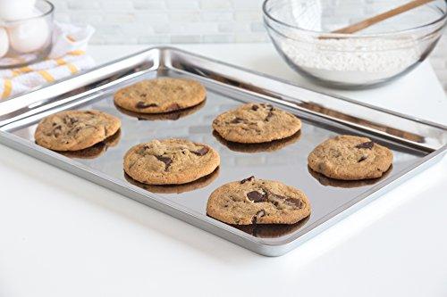 Bake scrumptious treats with this Jelly Roll Pan. Our beautifully crafted stainless steel bakeware features a stain, scratch, and rust resistant surface that will not warp or corrode, but will preserve its elegant shine over time. Having the ability to withstand extreme temperatures and heavy scrubbing, this non-reactive and nonporous stainless steel pan will provide for years of safe and successful baking. More than a jelly roll pan, it is an all purpose baking pan that also functions as a cookie sheet and roasting pan. Its size makes it perfect for baking a delicious Bûche de Noël, toasting an array of tasty nuts, roasting a succulent selection of veggies, or baking a batch of your favorite cookies. Best of all, leftover food particles will wash off effortlessly. For perfect, even browning, bake Fox Run.