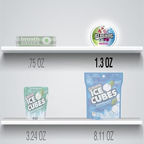 ICE BREAKERS DUO watermelon flavored, sugar free mints with cooling crystals deliver a blast of fruity, watermelon deliciousness with cooling crystals. These cool mints in a tin are the perfect size for popping into your mouth whenever you're ready for cool, fruity flavor. ICE BREAKERS DUO watermelon flavored mints are ready to be your go-to when you want to invigorate your taste buds. After breakfast, lunch or your morning or midday coffee, pop one of these treats into your mouth for immediate coolness and a refreshing watermelon flavor.