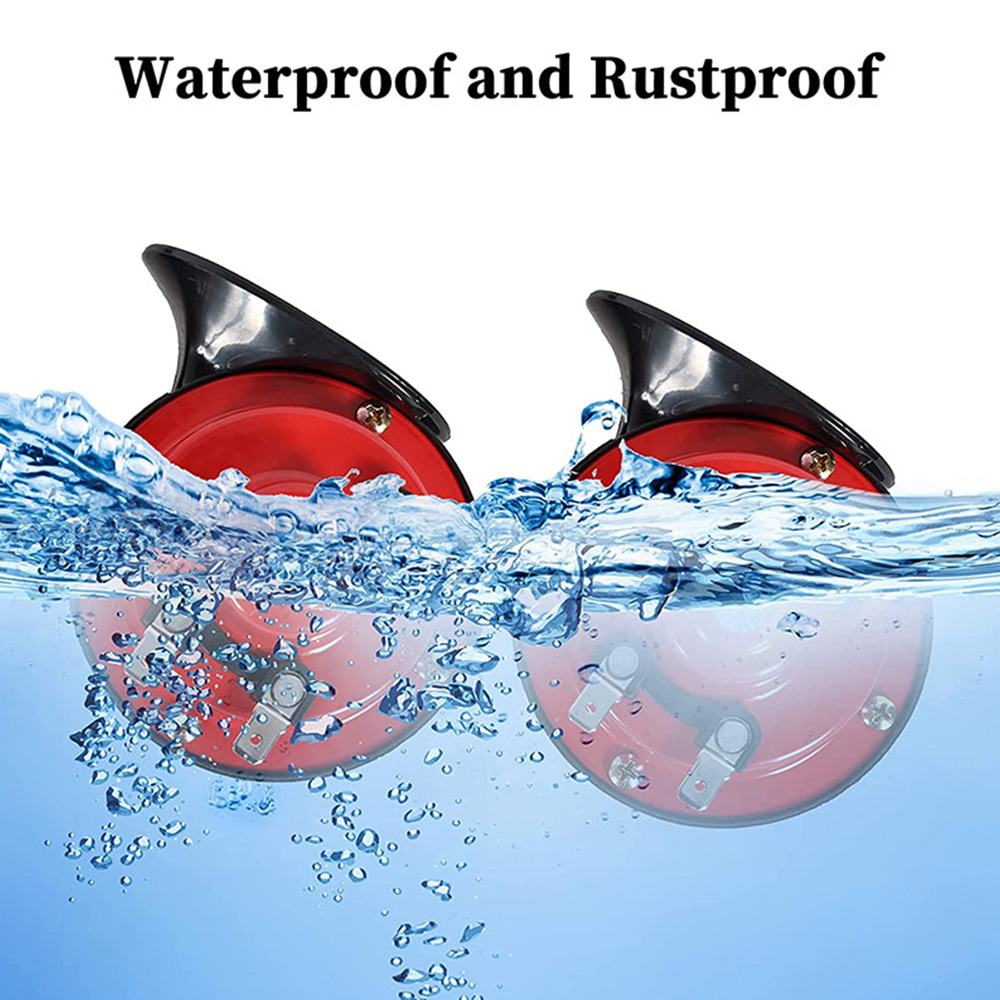 Description: 1. Compact Design. 2.300DB Sound Volume, The Most Powerful on The Market! 3. Loud, Clear and Deep Train-Like Sound. 4. Simple Installation. 5. Complete Water and Weather Resistance.