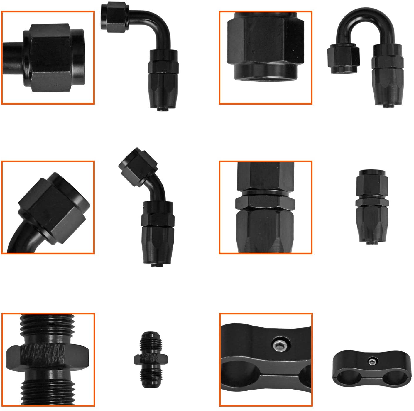 8 PCS AN-6 Straight Reusable Swivel Hose End