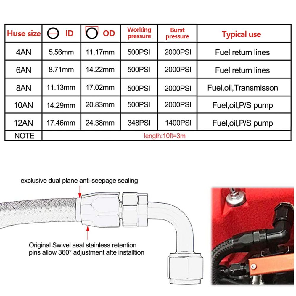 1.Type:AN6 33Ft Oil Fuel Fittings Kit