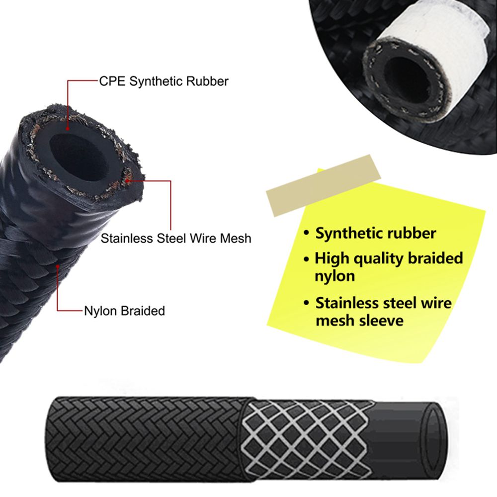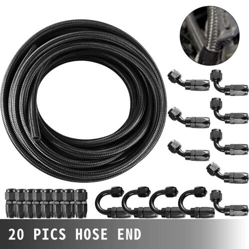 6AN Black Nylon E85 Fuel Gas Oil Line 33FT 30PCS AN6 Fittings Hose Kit E85