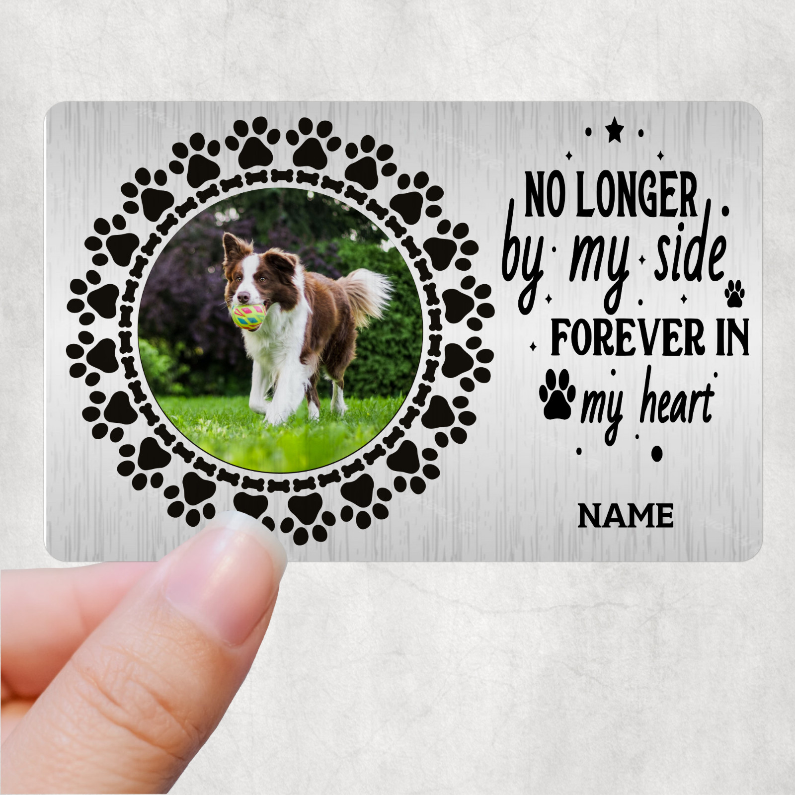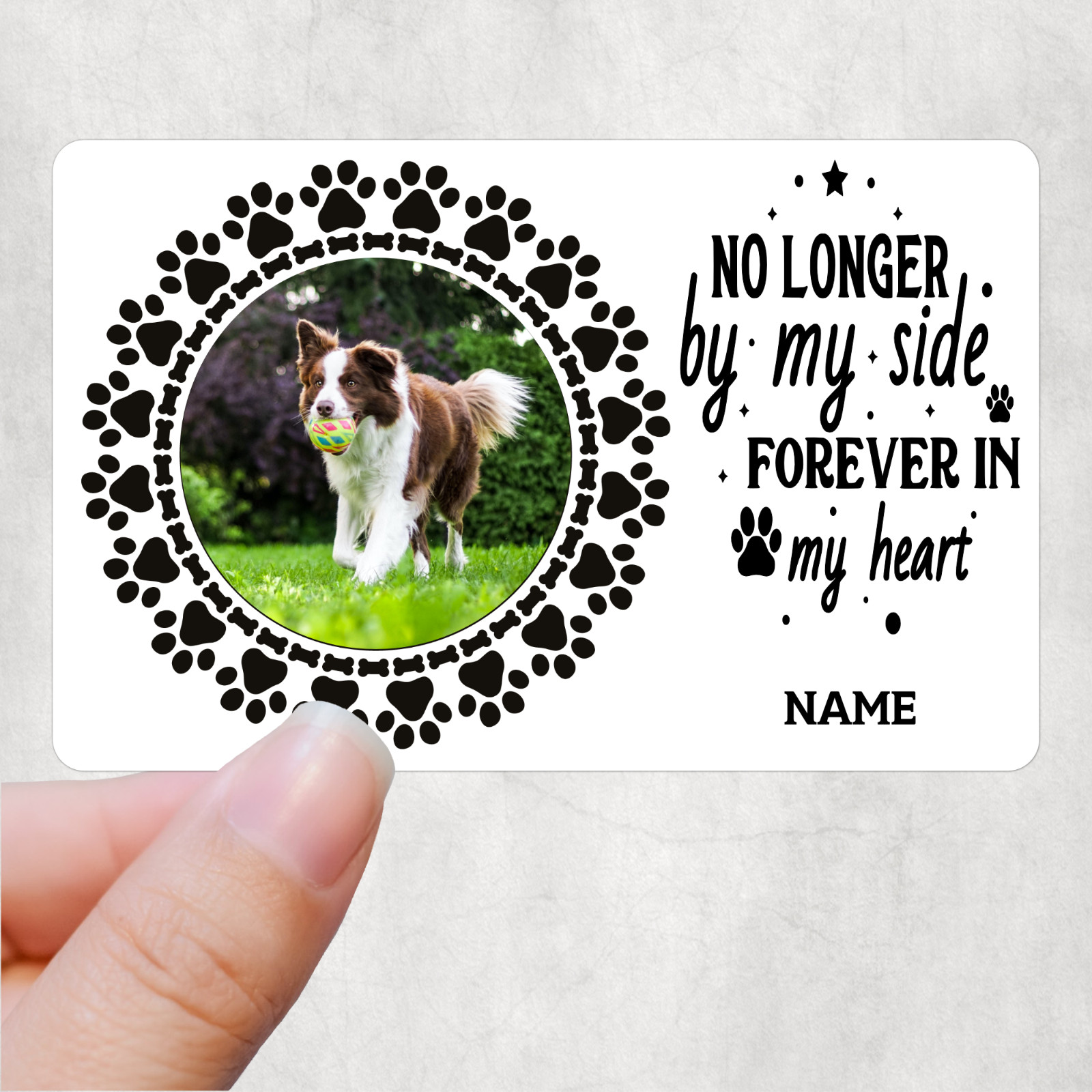To make it personalised please fill in what pets name you want and send over the photoCredit Card Size: Width 54 mm x Height 86 mm