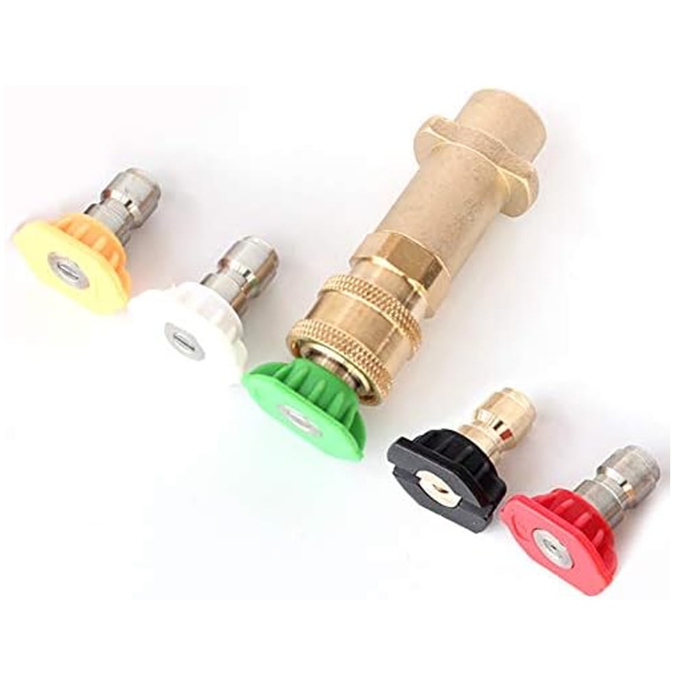 FeatureMaterial: BrassPackage includes: 1 x Pressure Washer Gun Adapter with 1/4" Female Quick Connect Fitting for Karcher K Series5 pcs nozzles pressure washer spray nozzle tips (different angle)