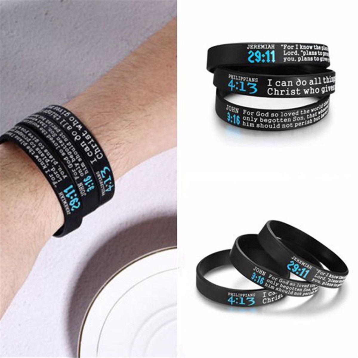 4Pcs Bible Verse Wristbands Christian Bracelet Band Bangles 29:11/3:16/4:13