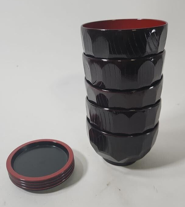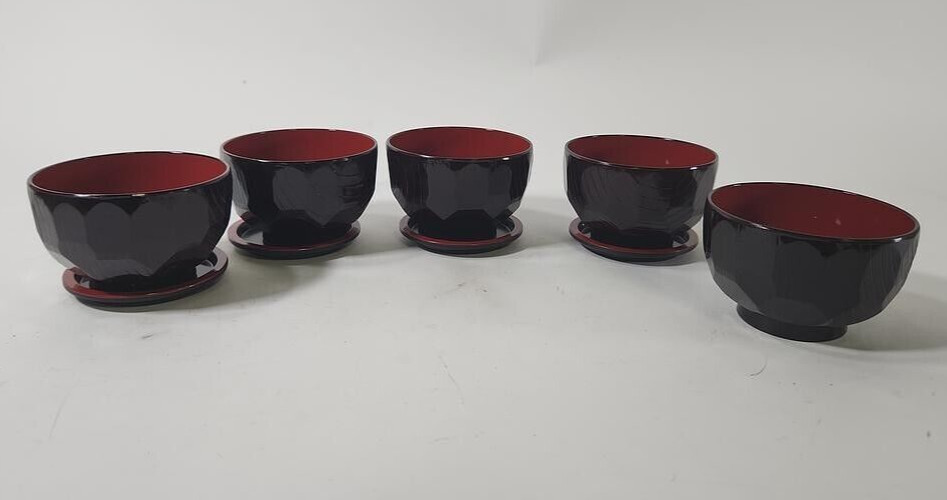 Elevate your dining experience with this set of 5 like-new 4.5" Plastic Lacquered Miso Soup Rice Bowls from Japan.