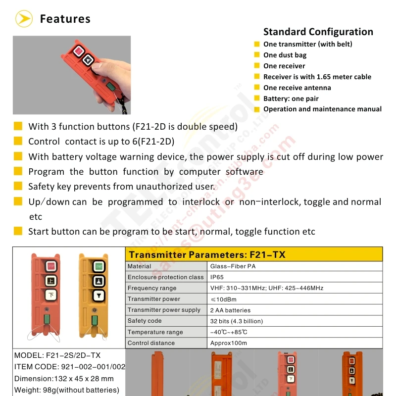 9. Receiver Power Supply: AC 380V/220V or DC 24V/36V