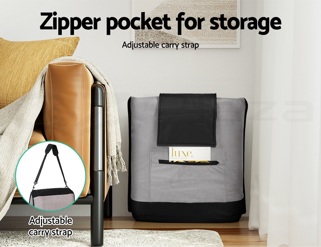 Artiss floor lounge sofa is designed to provide unmatched comfort and versatility. It combines practical features and elements to create a comfortable seating space for relaxation and leisure. The floor lounge is crafted with premium linen and deluxe flocking fabric. It exudes elegance and ensures a soft and cosy feel. And the heavy-duty steel frame guarantees durability and stability. Designed with your comfort in mind, the lounge chair features a headrest cushion that provides excellent head and neck support. And the adjustable backrest offers five different positions, allowing you to effortlessly find your preferred angle for reading, watching movies, or simply reclining. Furthermore, our floor lounge is designed with your convenience in mind. It boasts a foldable design that saves space, and the adjustable carry strap makes it easy to move around or in different rooms. It also has a zippered cover that can be removed for washing and cleaning. For added functionality, it’s equipped with a storage pocket, which provides a space to keep your essentials within reach. Bring home this floor lounge chair to create a relaxing spot to unwind.