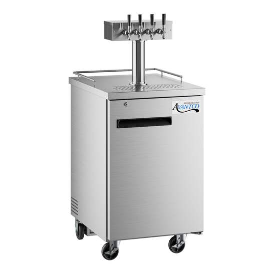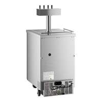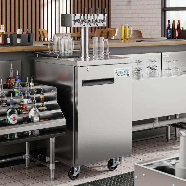 Whether you operate a pub, banquet hall, catering service, or facilitate other special events, this Avantco UDD-2-HC-S triple tap beer dispenser is an excellent way to offer crisp, refreshing draft beer to your guests without investing in a complex built-in tap system! This unit features a triple tap tower with a 10 1/4" faucet height that allows you to easily fill pint glasses and pitchers with local microbrews, international macrobrews, and everything in between. It holds (2) 1/2 kegs so you can stock up on one brew or offer customers a selection to choose from, and it even comes with 2 shelves for optional bottle or can storage while concealing the product behind 2 solid doors. The doors themselves are not only self-closing to prevent potential energy loss, but also lock to prevent theft during off hours.