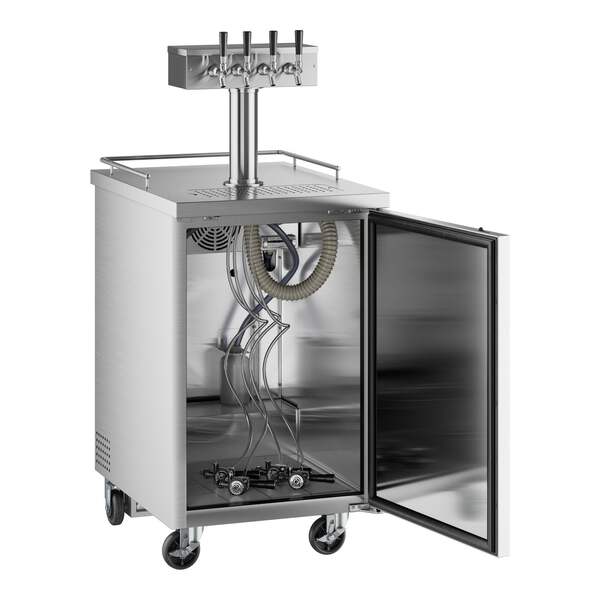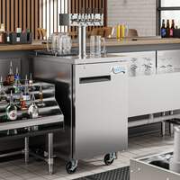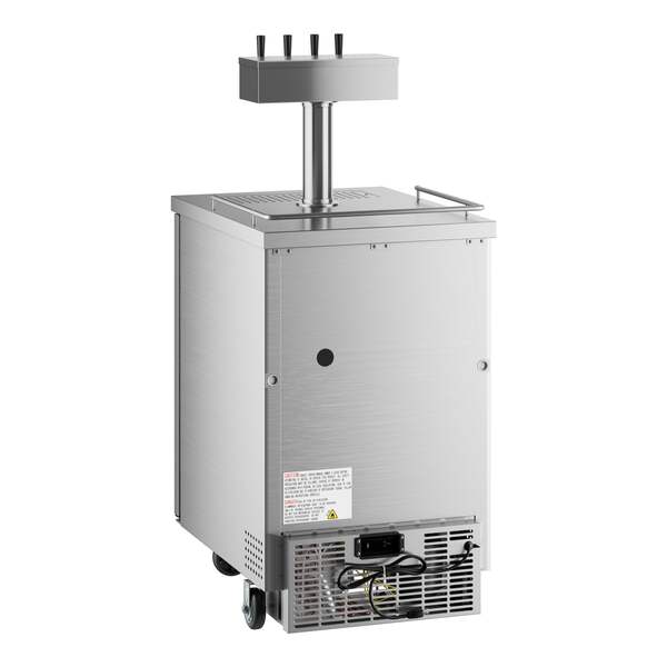 Unlike many competitive beer dispensers, this model ships with "D" system couplers. It features a sleek stainless steel exterior and a 304 type stainless steel interior that is both durable and easy to clean, while a built-in drip tray further expedites end-of-day cleaning. It has a 1/4 hp refrigeration system that circulates R290 hydrocarbon refrigerant. R290 refrigerant has an ozone depletion potential (ODP) of 0 and a global warming potential (GWP) of 3, making it an energy-efficient choice for your business. A 115V electrical connection is required for operation.