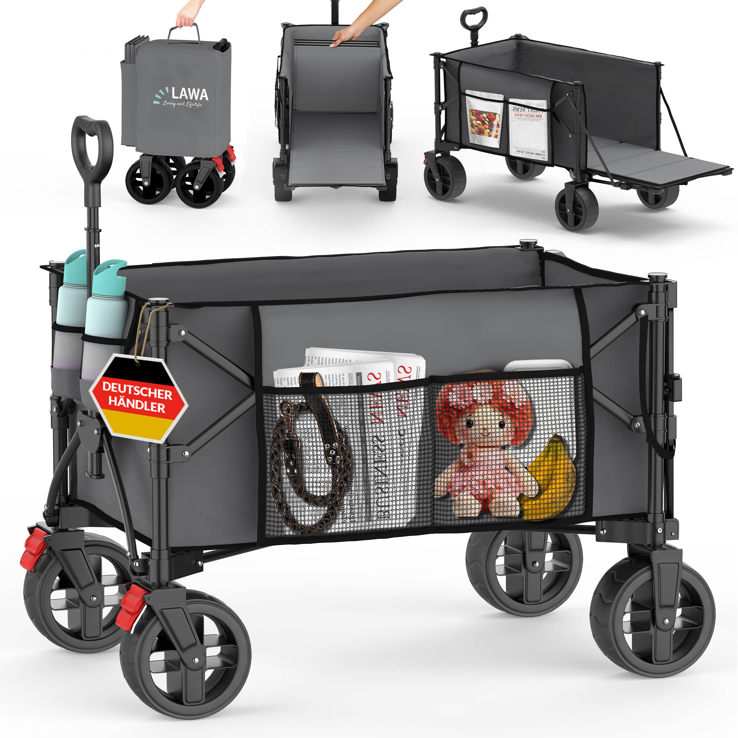 Bollerwagen Handwagen faltbar Dach leicht klappbar Transportwagen Einkaufswagen