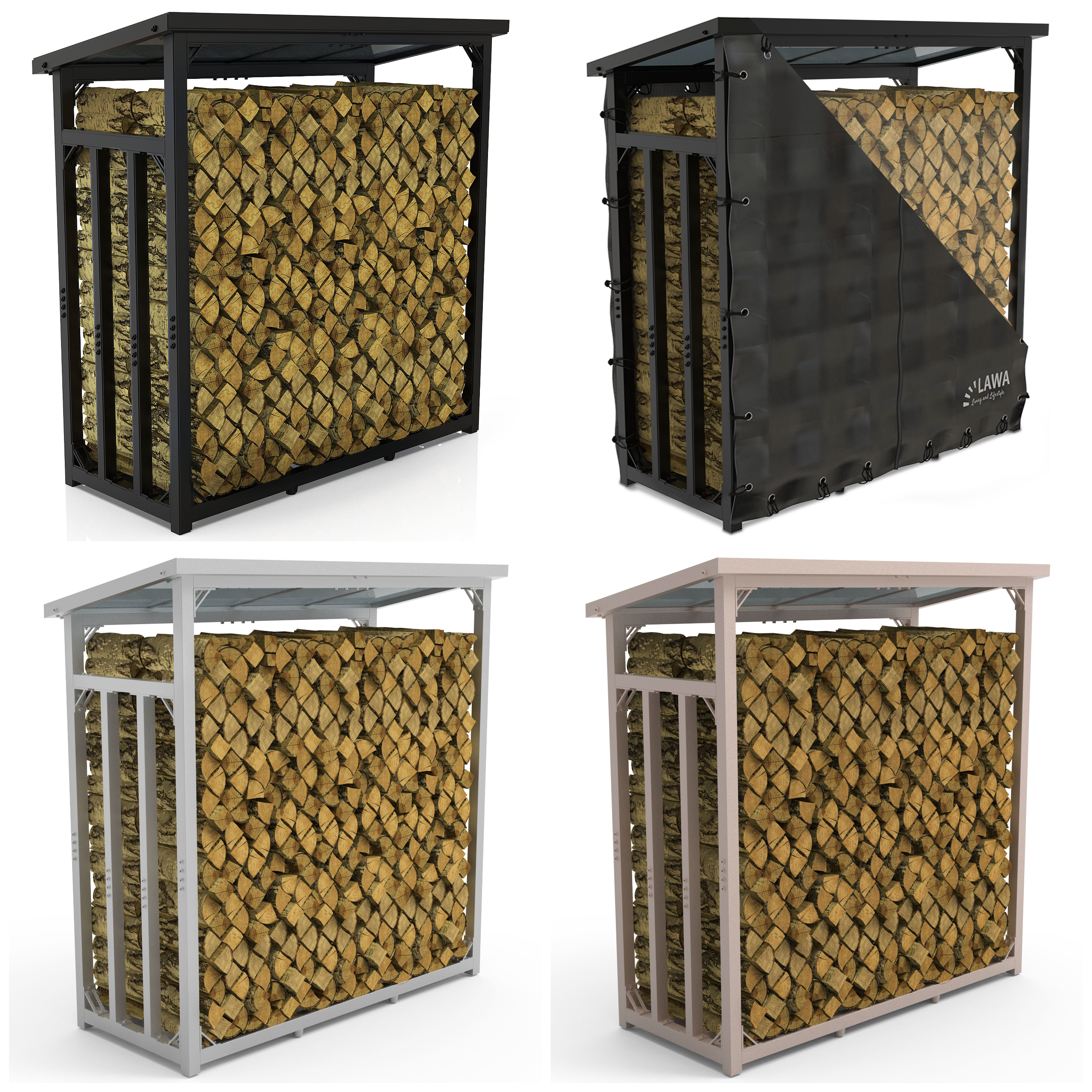 Kaminholz Regal außen Metall Brennholzregal Plane Stapelhilfe VERZINKT Holzlege