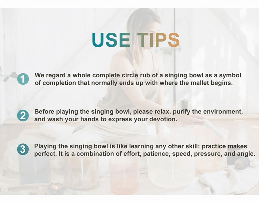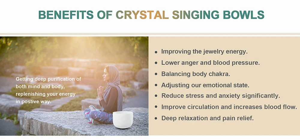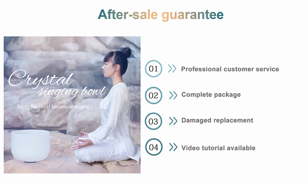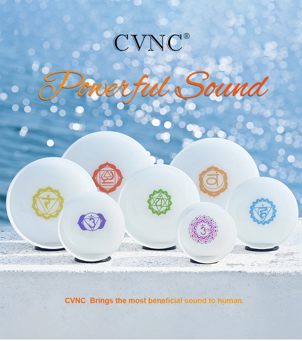 CVNC 432Hz 6"-12" 7 Pcs Chakra Print Crystal Singing Bowl W/Case Sound Meditaion Feature Sound healing and meditation, prayer,yoga, stress reduction, balancing body chakra, adjusting our emotional state and so on. Item Include 7pc crystal singing bowl 4pcs mallets 7pcs O-ring 2pcs carry bags About Us 1.All messages will be answered within 1 business day. If you do not receive our reply, please kindly re-sent your message and we will reply to you as soon as possible Please come back soon and visit us again! 2.Welcome to our store! We are a professional worldwide wholesale company. High product quality, reasonable prices, excellent customer service and a reliable credit standing is our tenet. Our quartz crystal singing bowl are made of over 99.9% pure quartz crystal. We have about 18 years of production experience,we founded in 2004. Our main products are Frosted crystal singing bowls, Clear crystal singing bowls, Crystal singing pyramids, Crystal singing harps, Crystal tuning forks and so on. 3.If you like our products, please add my eBay shop to your "My Favorites" list. Contact Us 1.Please contact us if you are not satisfied with the item after receive it. 2.You contact us immediately before you give us neutral or negative feedback, so that we can satisfactorily address your concerns. Return 1. The crytal singing bowl is fragile, but we promise that if it is damaged during transportation, please contact us, we will replace it for you free of charge. 2.Please Do Not click "Return this item" in any situation. Because sometimes it will spend more time to resolve the issue,Click contact us via Ebay Message(protected by Ebay),that is the fastest way to solve any problem for you. Shipping 1. Orders processed within 1-3 days of payment verification during working days. 2. Local delivery takes about 2-7 business days to your place