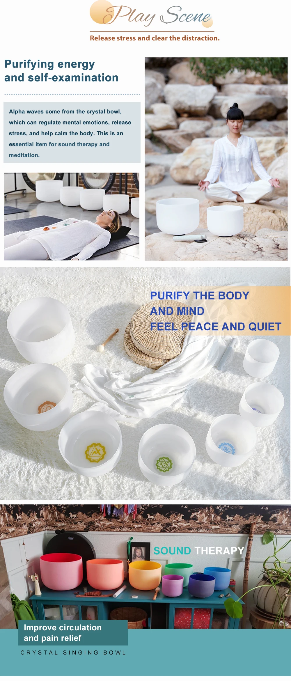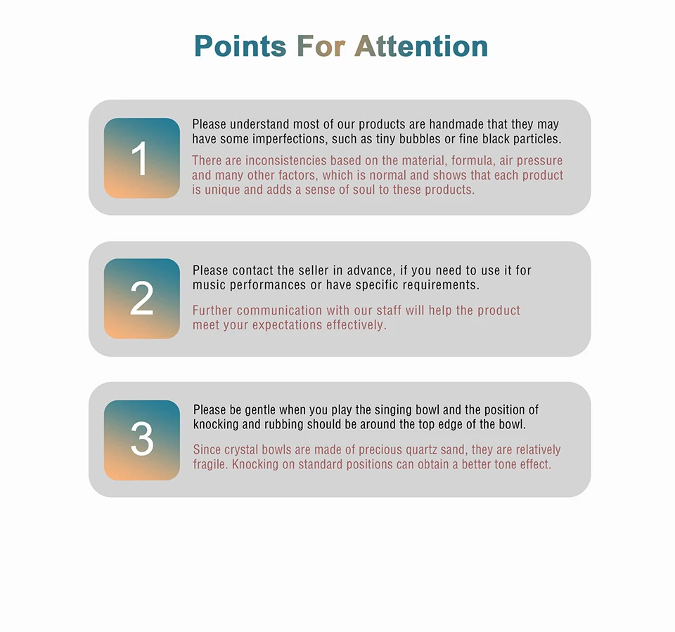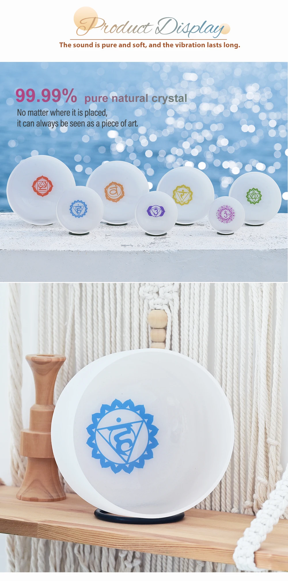 CVNC 432Hz 6"-12" 7 Pcs Chakra Print Crystal Singing Bowl W/Case Sound Meditaion Feature Sound healing and meditation, prayer,yoga, stress reduction, balancing body chakra, adjusting our emotional state and so on. Item Include 7pc crystal singing bowl 4pcs mallets 7pcs O-ring 2pcs carry bags About Us 1.All messages will be answered within 1 business day. If you do not receive our reply, please kindly re-sent your message and we will reply to you as soon as possible Please come back soon and visit us again! 2.Welcome to our store! We are a professional worldwide wholesale company. High product quality, reasonable prices, excellent customer service and a reliable credit standing is our tenet. Our quartz crystal singing bowl are made of over 99.9% pure quartz crystal. We have about 18 years of production experience,we founded in 2004. Our main products are Frosted crystal singing bowls, Clear crystal singing bowls, Crystal singing pyramids, Crystal singing harps, Crystal tuning forks and so on. 3.If you like our products, please add my eBay shop to your "My Favorites" list. Contact Us 1.Please contact us if you are not satisfied with the item after receive it. 2.You contact us immediately before you give us neutral or negative feedback, so that we can satisfactorily address your concerns. Return 1. The crytal singing bowl is fragile, but we promise that if it is damaged during transportation, please contact us, we will replace it for you free of charge. 2.Please Do Not click "Return this item" in any situation. Because sometimes it will spend more time to resolve the issue,Click contact us via Ebay Message(protected by Ebay),that is the fastest way to solve any problem for you. Shipping 1. Orders processed within 1-3 days of payment verification during working days. 2. Local delivery takes about 2-7 business days to your place