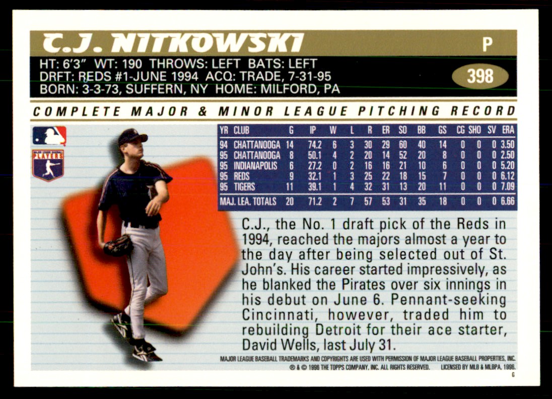 | 1996 Topps C.J. Nitkowski Baseball Cards #398 |