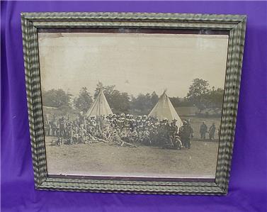 In this photograph there are actual Wampanoag Native Americans participating in this reenactment. This outstanding photograph is still housed in the original frame with slag board backing still intact. The photograph has not been removed for inspection.