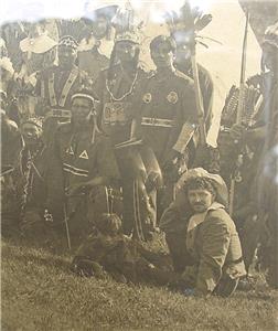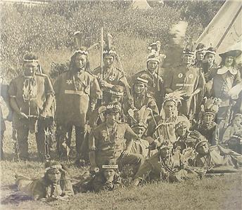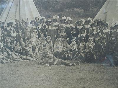 For your consideration I have an incredible large antique late 19th century albumen photograph of a reenactment of the first Thanksgiving between the Pilgrims and Native Americans. As was the custom in England, the Pilgrims celebrated their first harvest with a festival. The 50 remaining colonists and roughly 90 Wampanoag tribesmen attended the "First Thanksgiving."