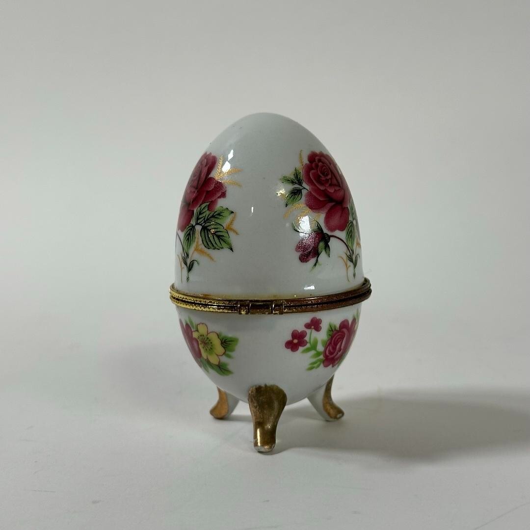 "Elevate your trinket collection with this pre-owned Vintage Porcelain Egg Trinket Jewelry Ring Box"