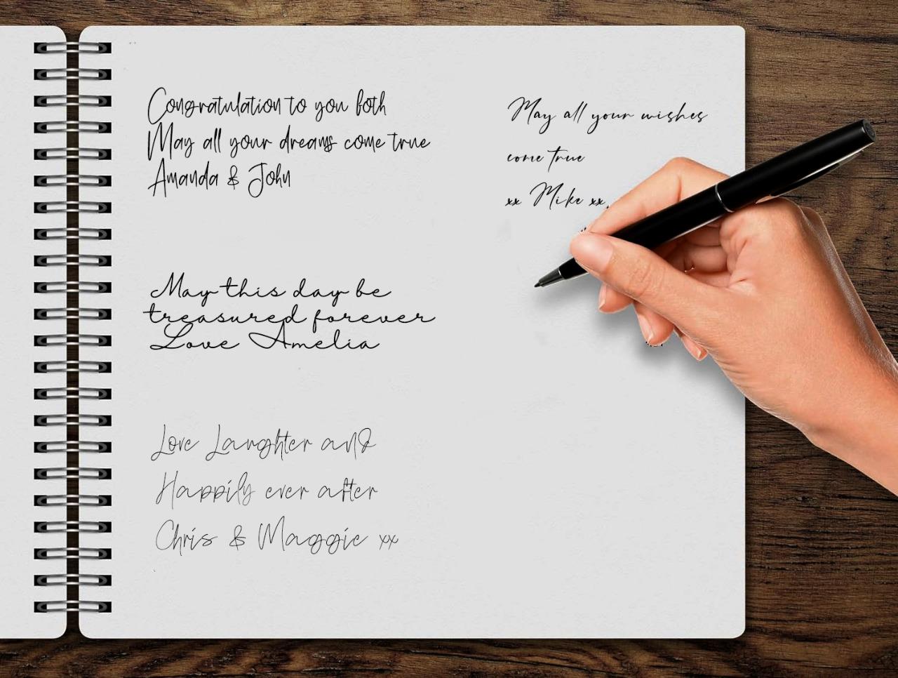 Elegant design and layout that complements various wedding themes and styles. Ideal for capturing heartfelt messages, well-wishes, and advice from friends and family Designed to last, this book provides your guests with a place to record their stories and special wishes to you, while also withstanding the test of time. Choose personalized options for added sentiment, or simply revel in its timeless, classy style. You'll cherish this book forever.