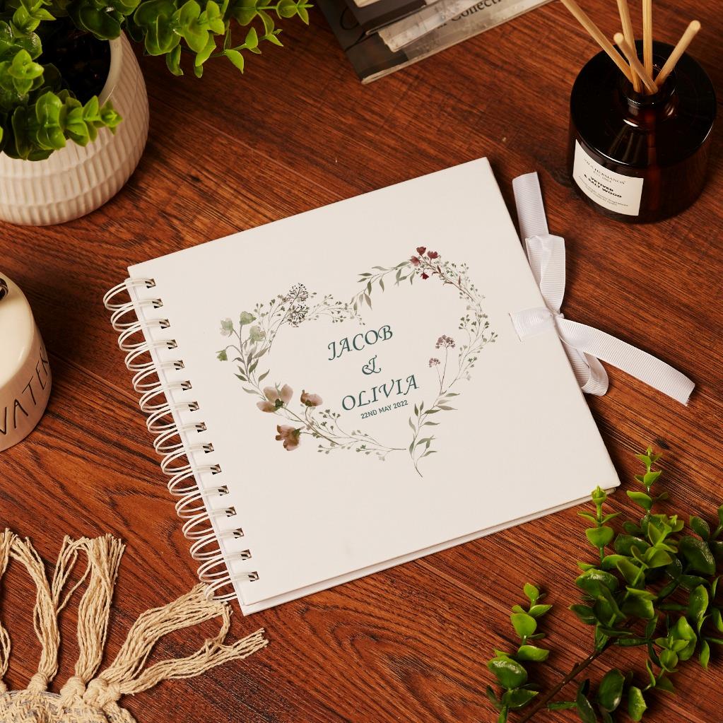 Personalised Wedding Guest Book Memory Book Photo Album Watercolour Floral Heart