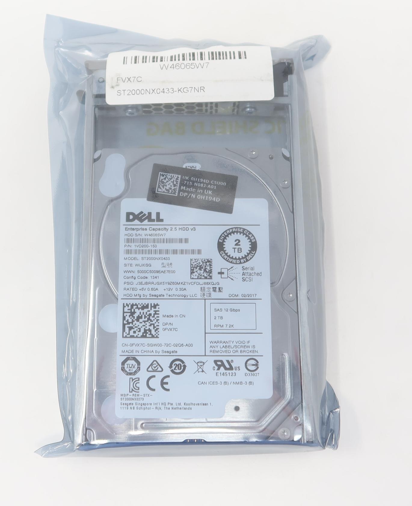 Purchase reliable and dependable 1VD200-150 Dell 2TB 7.2K SAS 12G SFF Server Hard Drive commonly used in enterprise environments, particularly in servers and storage systems where performance and reliability are critical.