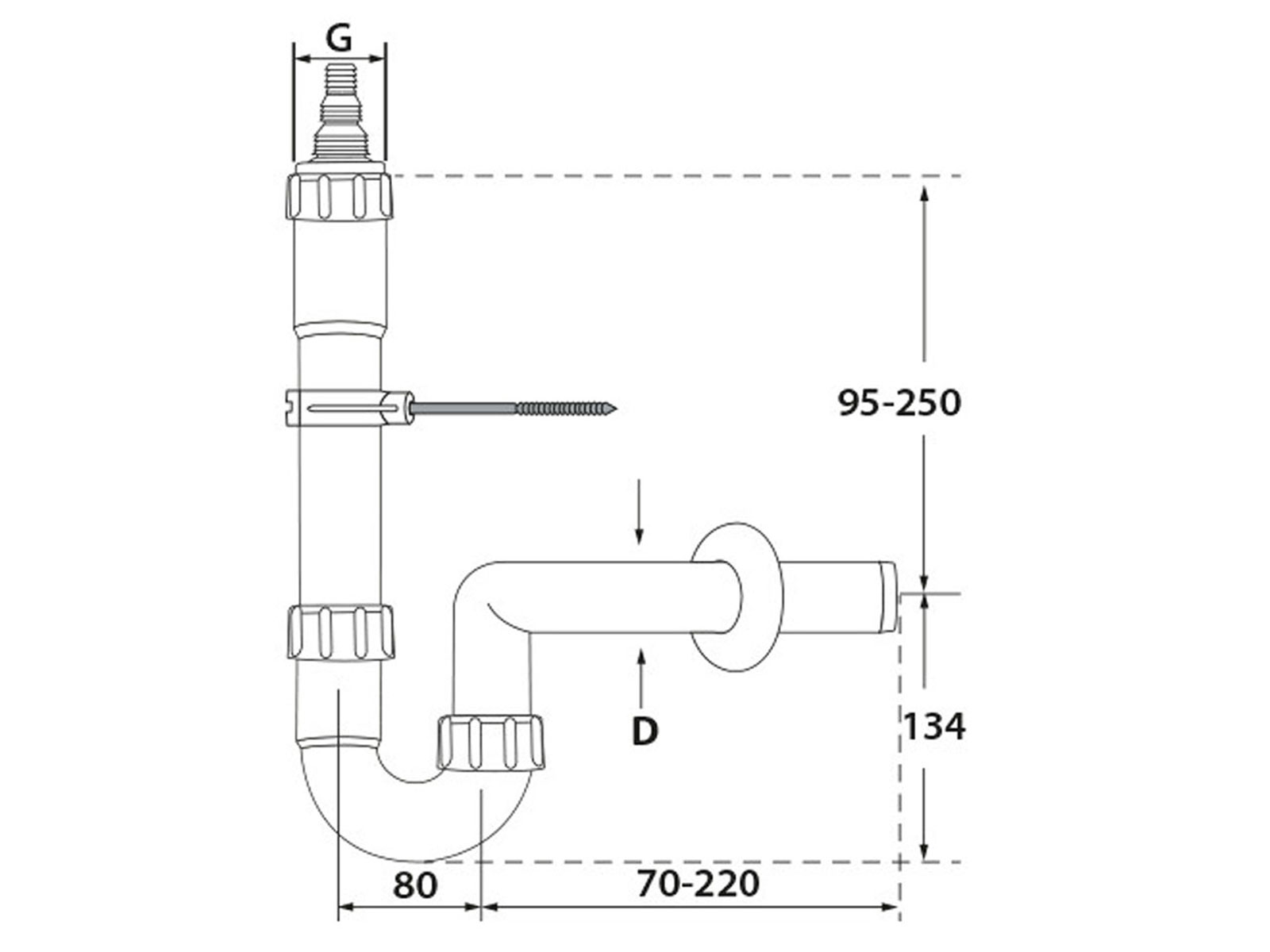 - Geräte-Siphon mit einem Kombi-Geräteanschluss ¾“, 1″ und G 1″