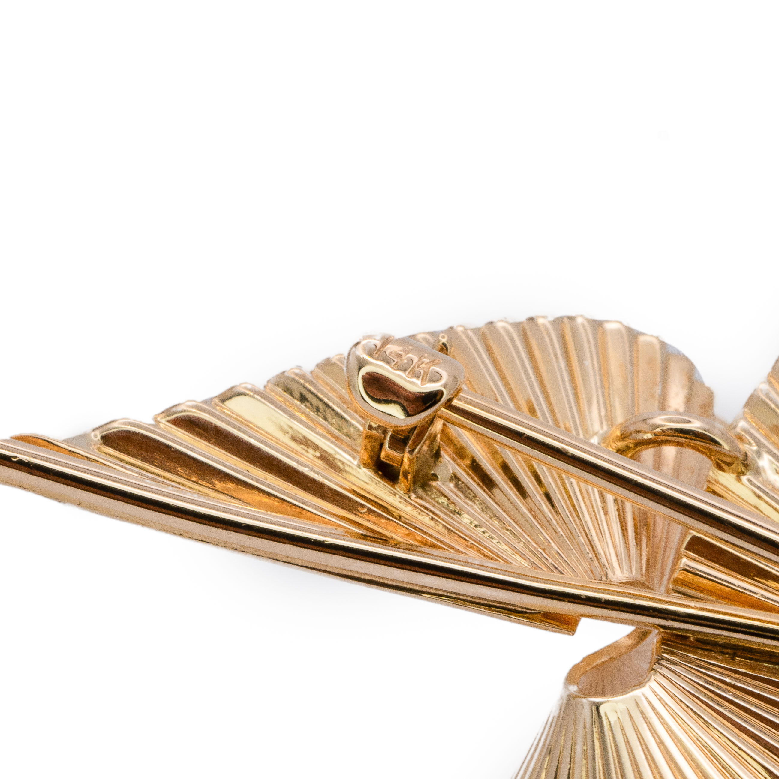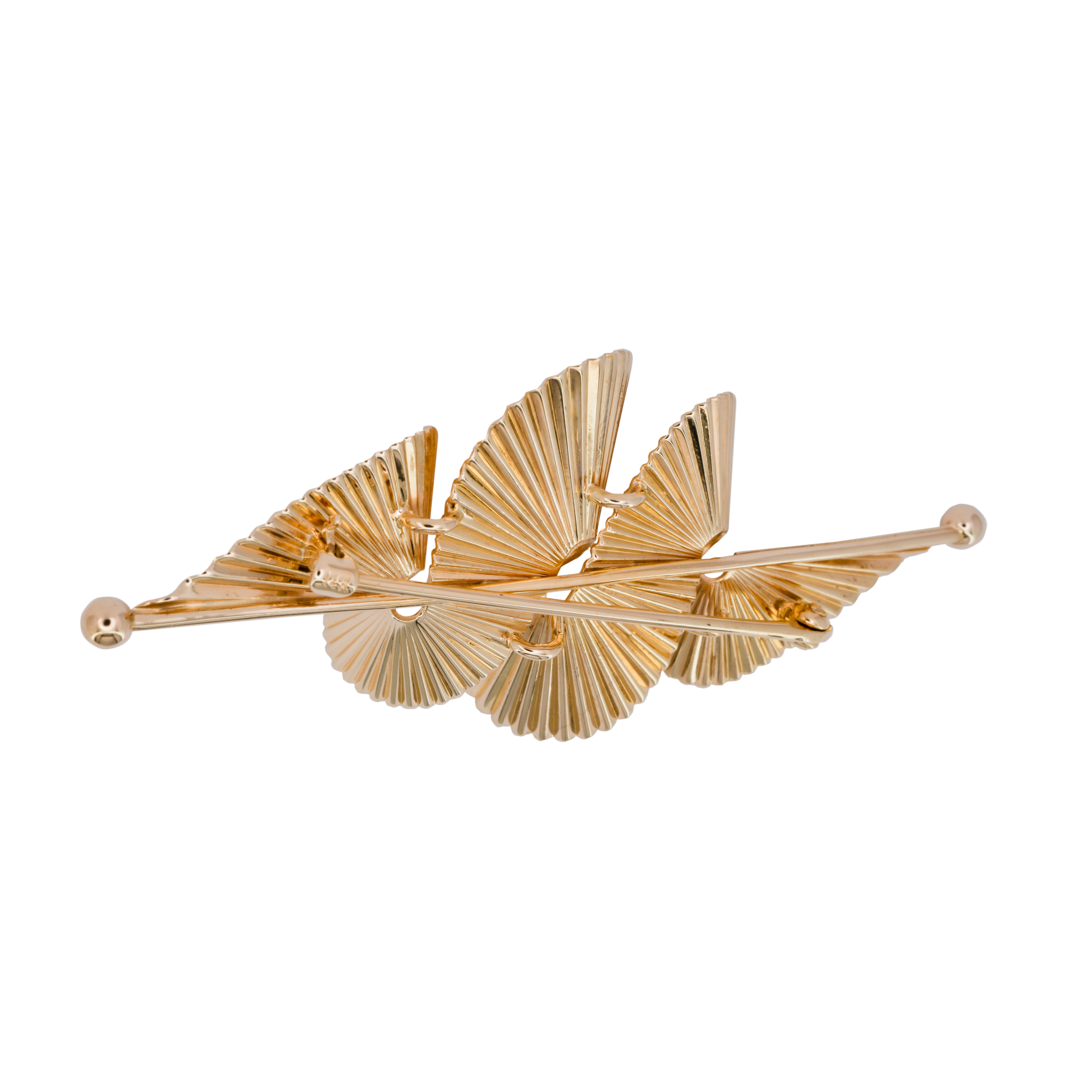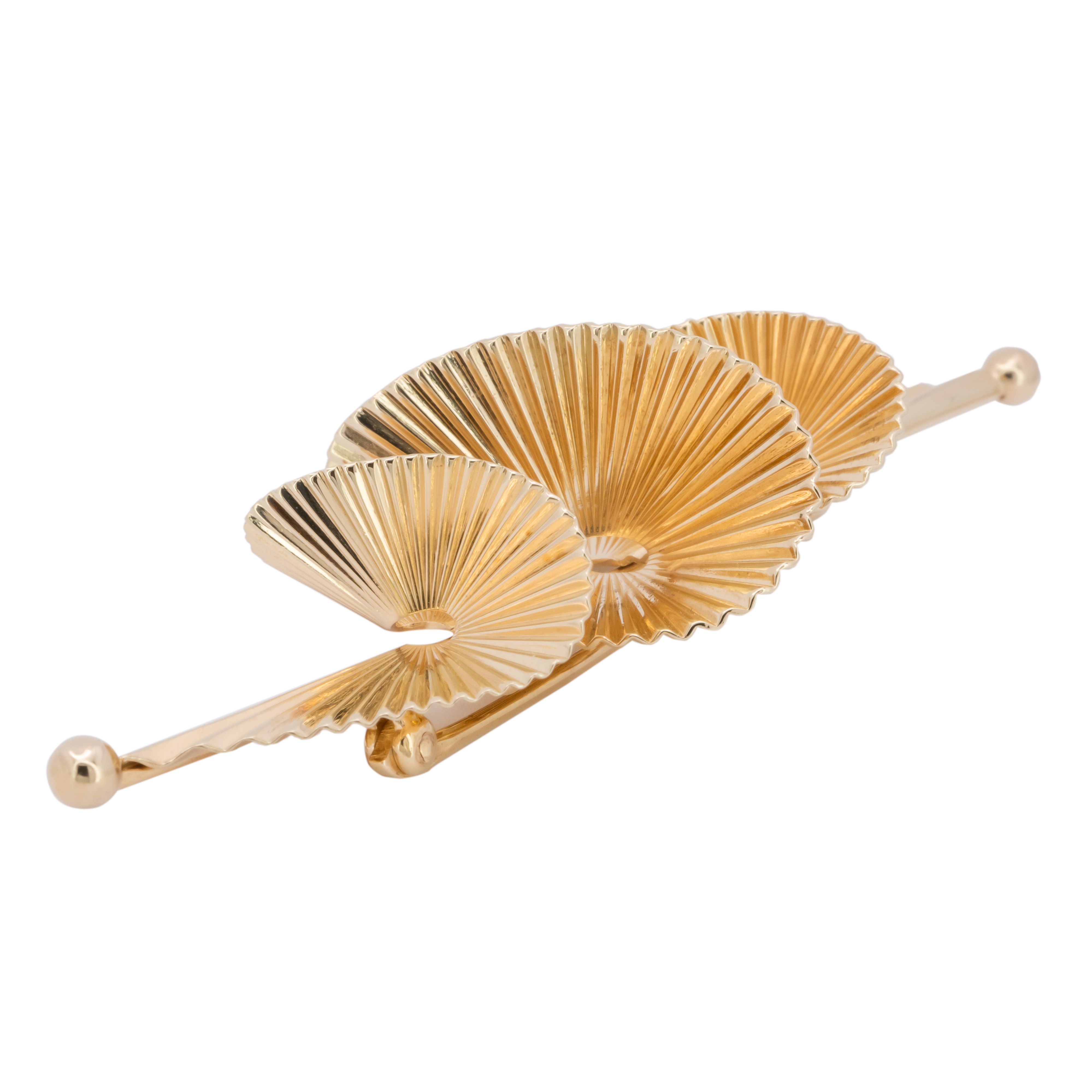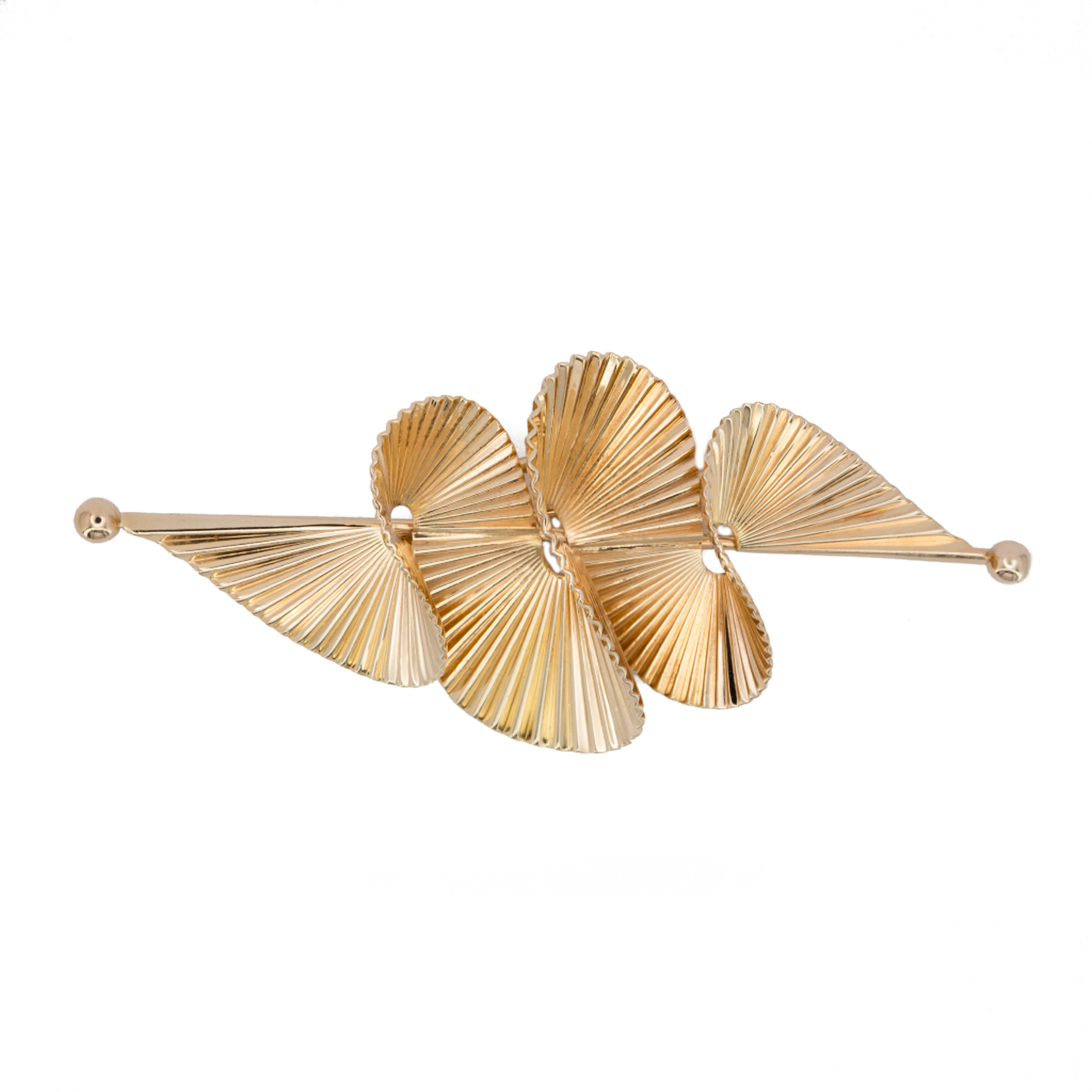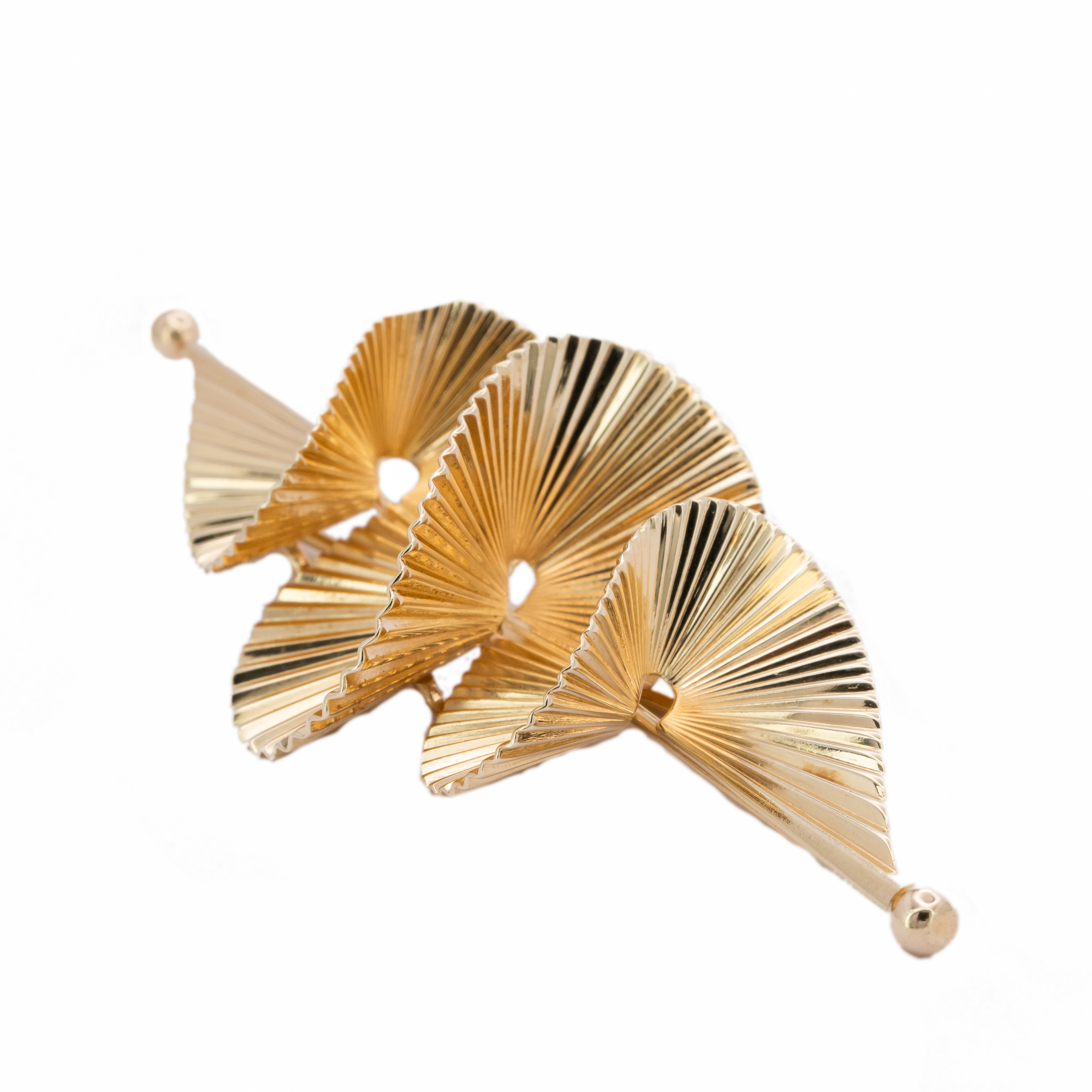Three dimensional triple swirl fan pin in 14k yelow gold