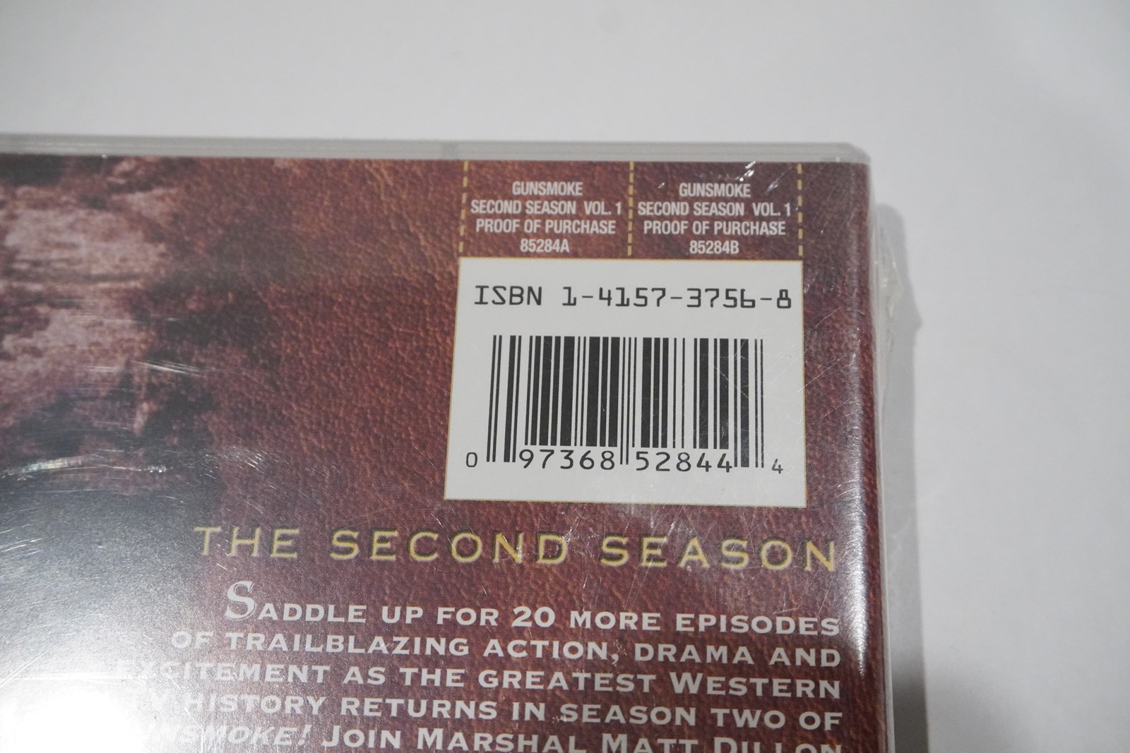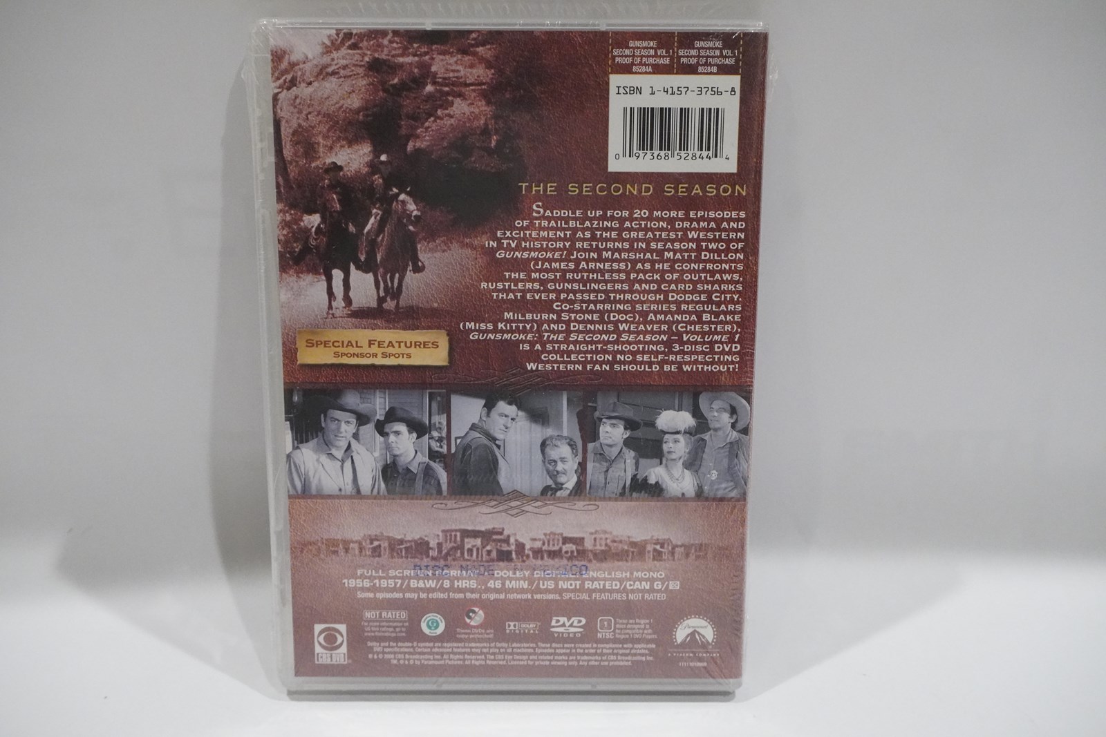 This listing is for a BRAND NEW, FACTORY SEALED copy of Gunsmoke The Second Season Volume 1 DVD Box Set. This item is completely brand new and has never been removed from its original packaging. Please note that there is a shrink wrap tear on the front of the packaging, which can be seen in the photos. Don't pass up the opportunity to add this item to your collection for a great price. The item will be packaged securely to prevent damage.