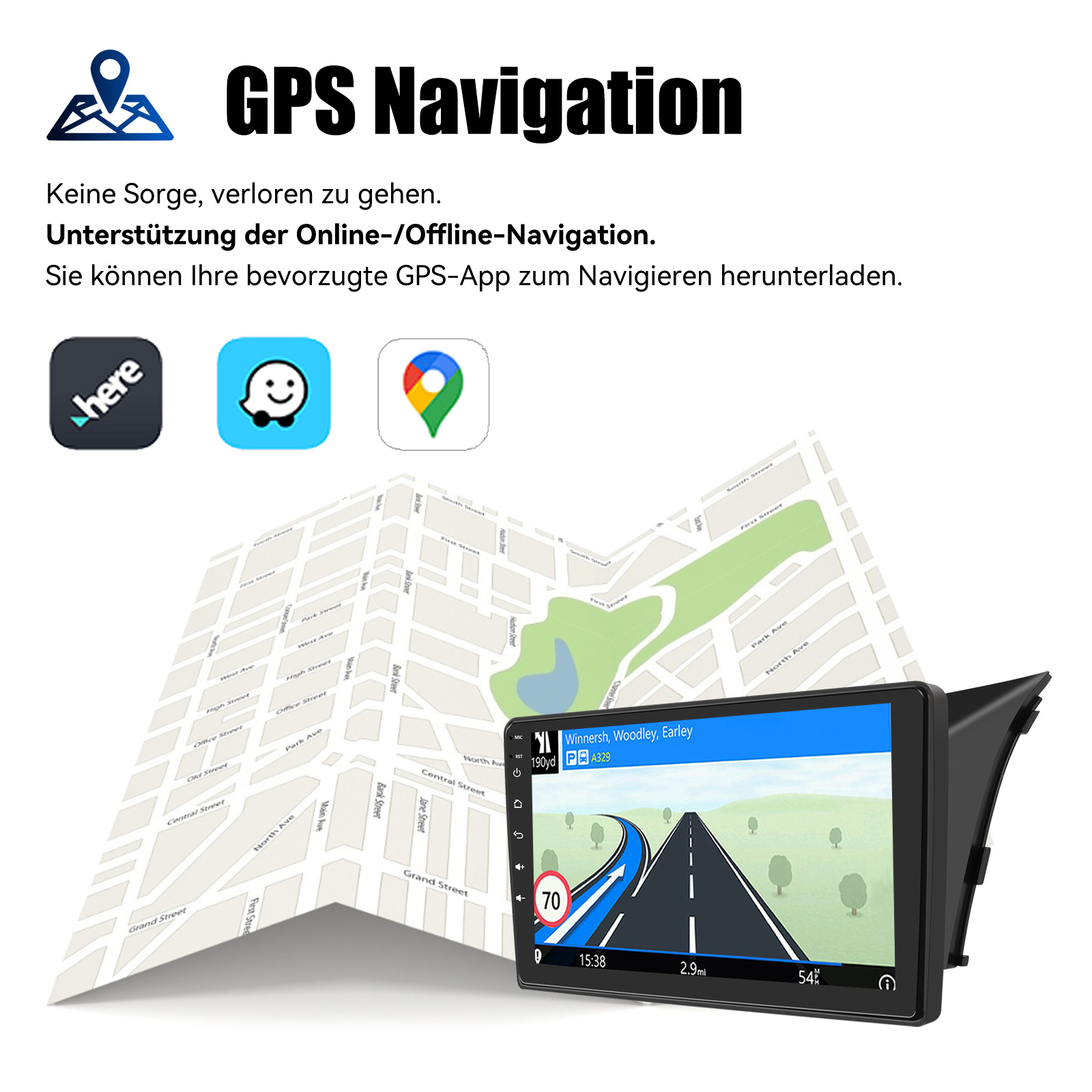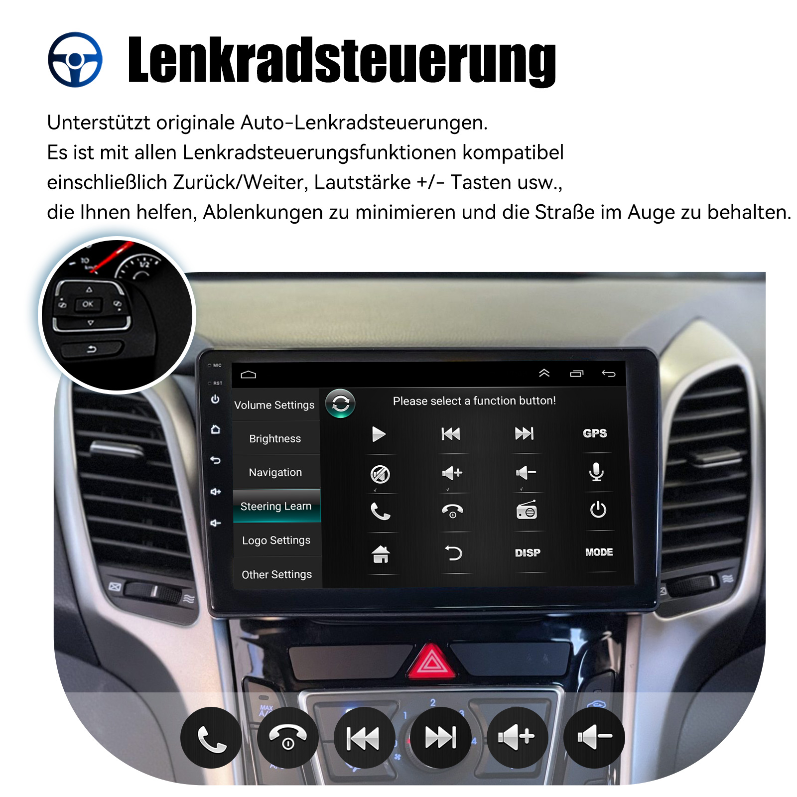 AHD Rückfahrkameraeingang und Lenkradkontrolle: Nach dem Anschluss an die Rückfahrkamera. Das Radio zeigt automatisch das Rückfahrbild an, sobald Sie den Rückwärtsgang einlegen. Machen Sie Ihr tägliches Rückwärtsfahren sicherer. Unterstützt AHD-Kamera. Unterstützt die originale Auto-Lenkradsteuerung , um das Fahren bequemer und sicherer zu machen.
