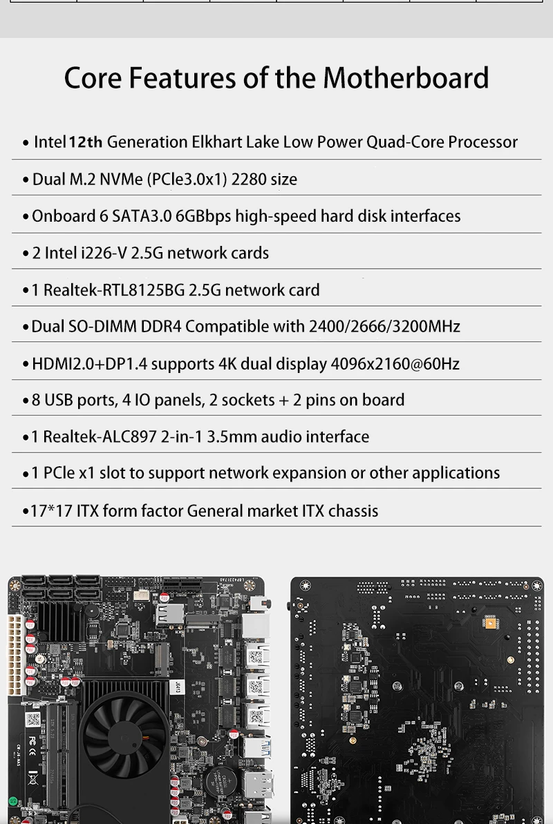 Notice 1. In'tel i226-V is a new network card, pfSense-CE etc system suppliers maybe have not released compatible driver to match yet, suggest to install newest version of following systems: OPNsense 22.x, pfSense plus, OpenWrt, ESXi, Proxmox, PVE, CentOS etc. Please make clear before buying, DO NOT open dispute because of system issue. 2. Must connect 24pins+4pins ATX 12V power suppy at the same time to power on.
