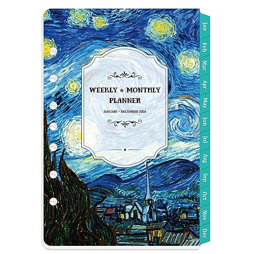 🌌 2024 Planner Refill - The 2024 planner refill contains 12 months of weekly and monthly pages, which runs from January 2024 - December 2024. The refill measures 5.5'' x 8.5'', perfect size to use and carry to school or office. Binder not included, so you can reuse your favorite refillable cover each year, putting the planner refills into a 7-hole organizer.