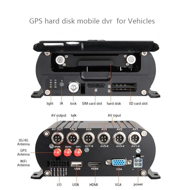 4.Support 2.5 inch HDD/SSD, maximum 2TB 5.Support SD card storage, maximum 256GB Transmission Interface: 1.Support 3G/4G transmission, LTE/HSUPA/HSDPA/WCDMA/EVDO/TD-SCDMA 2.Support GPS/BD optional, high sensitivity, fast positioning 3.Support wireless download by WiFi, 802.11b/g/n, 2.4GHz