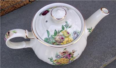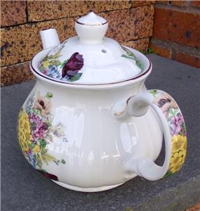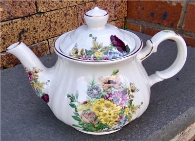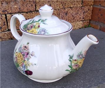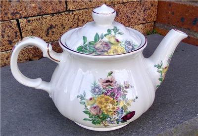 This auction is for a Sadler Windsor summer floral four cup teapot in excellent condition, exhibiting only a minor ding on the inside rim of the base shown close up in the item description photos.
