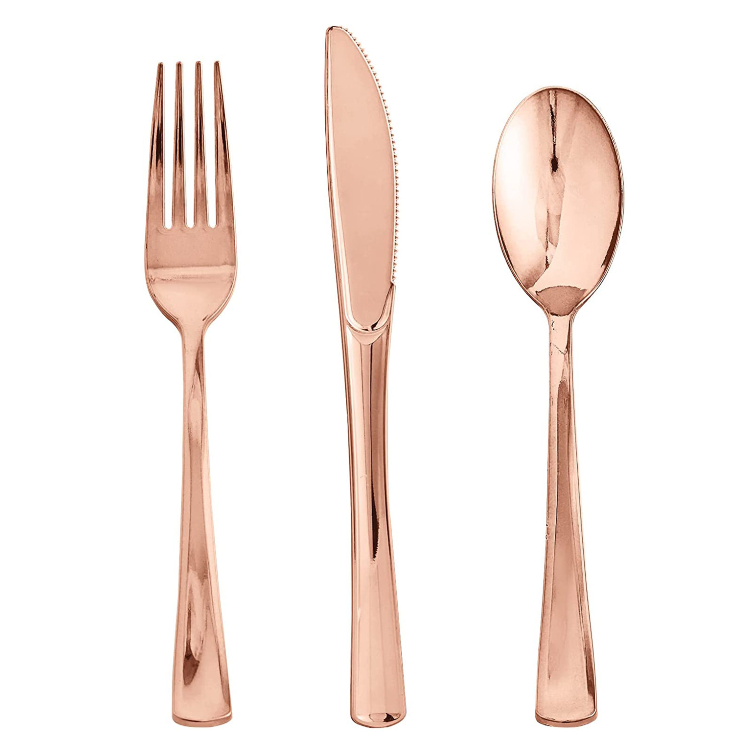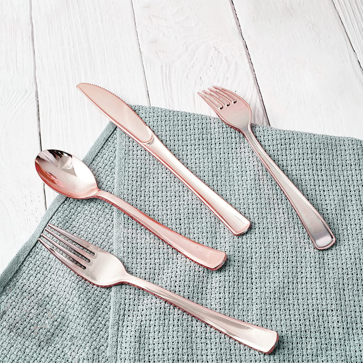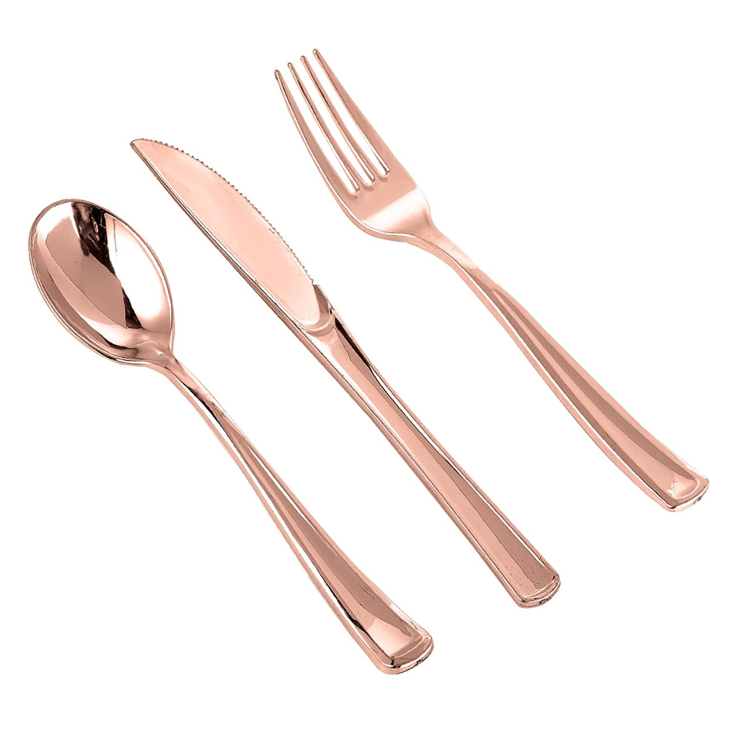 Upgrade your party with this elegant White and Rose Gold Collection Dinnerware set!