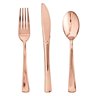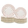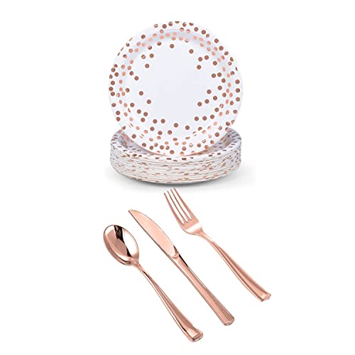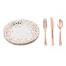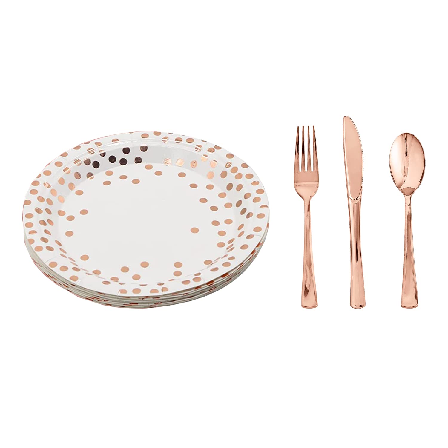 Rose Gold Dot Dinnerware Set Plates 7inch, 9 inch, Knives, Spoons, Forks 25pk Each