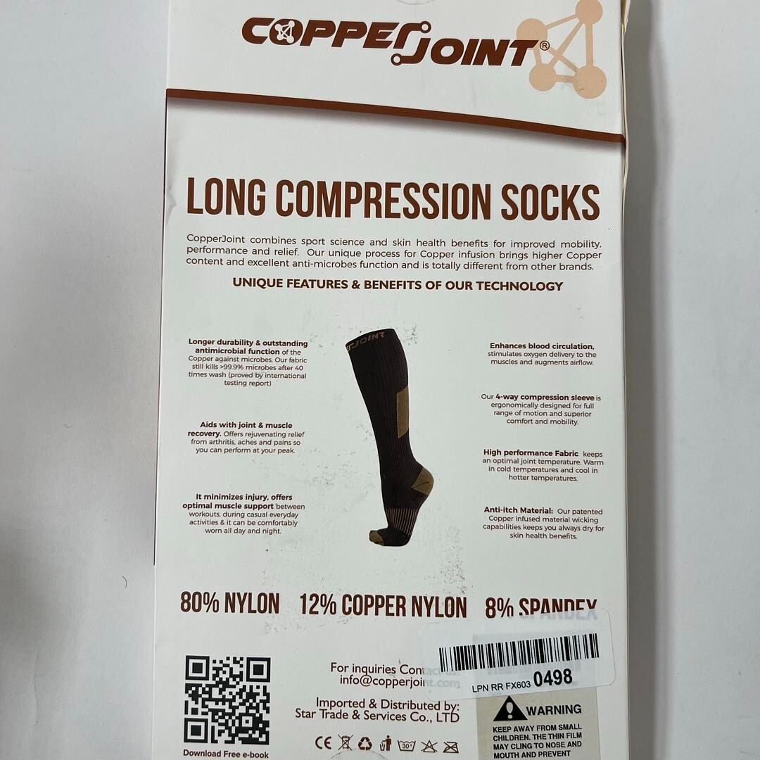 Experience lasting comfort with the pre-owned Copper Joint Long Compression Socks in Black. Crafted for support and improved circulation, these socks offer relief during extended periods of wear. The pre-owned condition ensures affordability without compromising quality. With their sleek black design and copper-infused technology, these compression socks provide a comfortable and stylish solution for all-day wear. Elevate your legwear collection with these cost-effective and dependable compression socks, promoting wellness with every step Track Page Views WithAuctiva's Counter