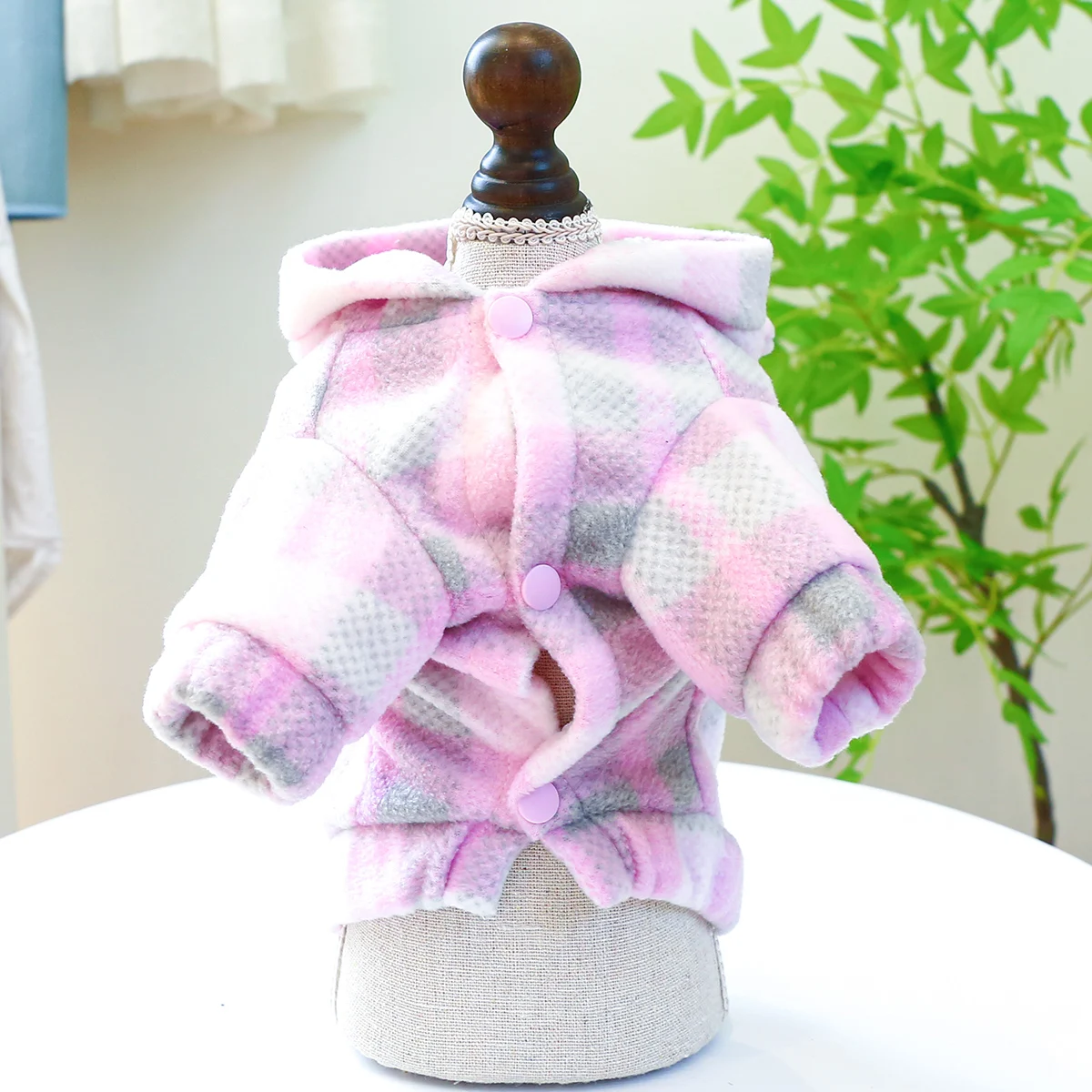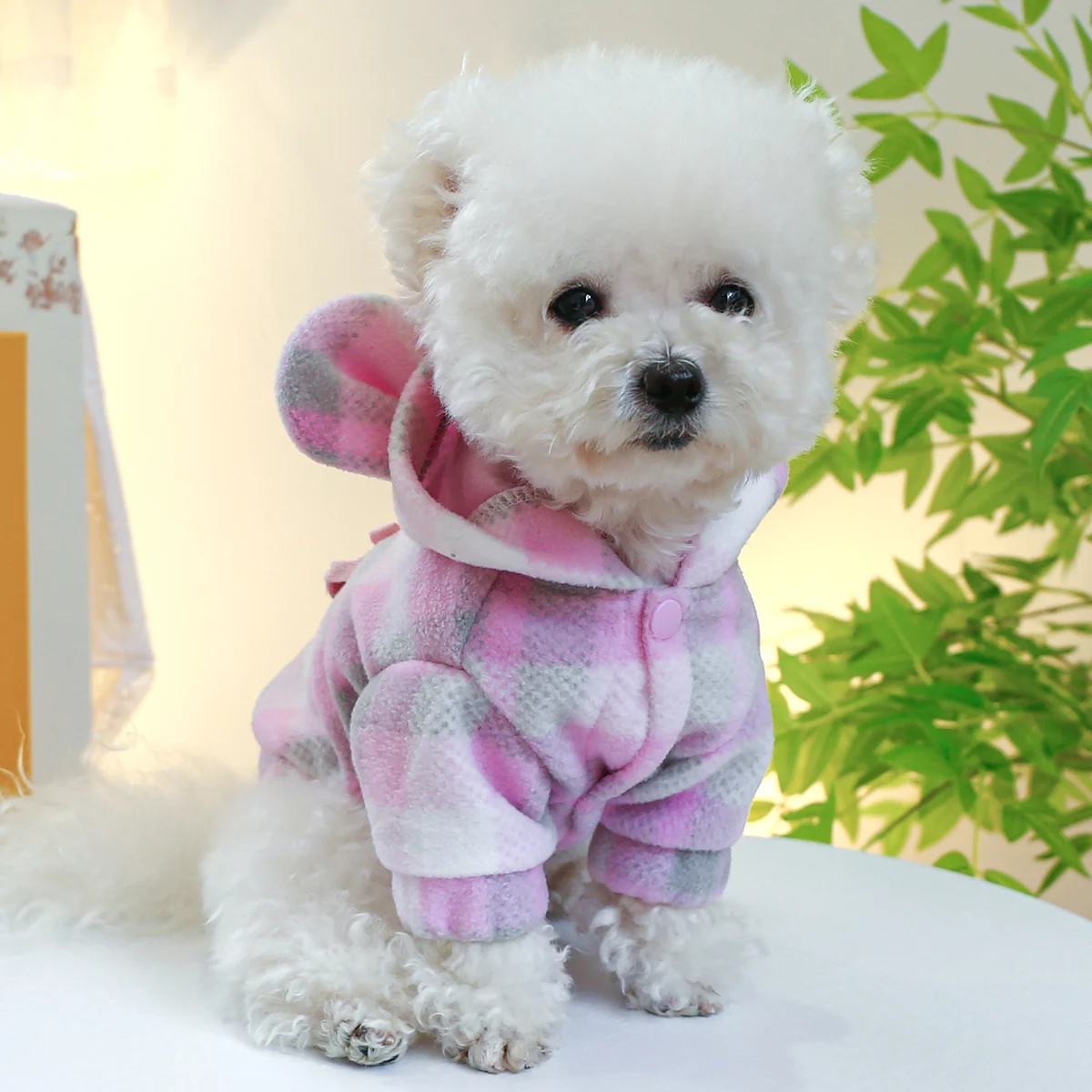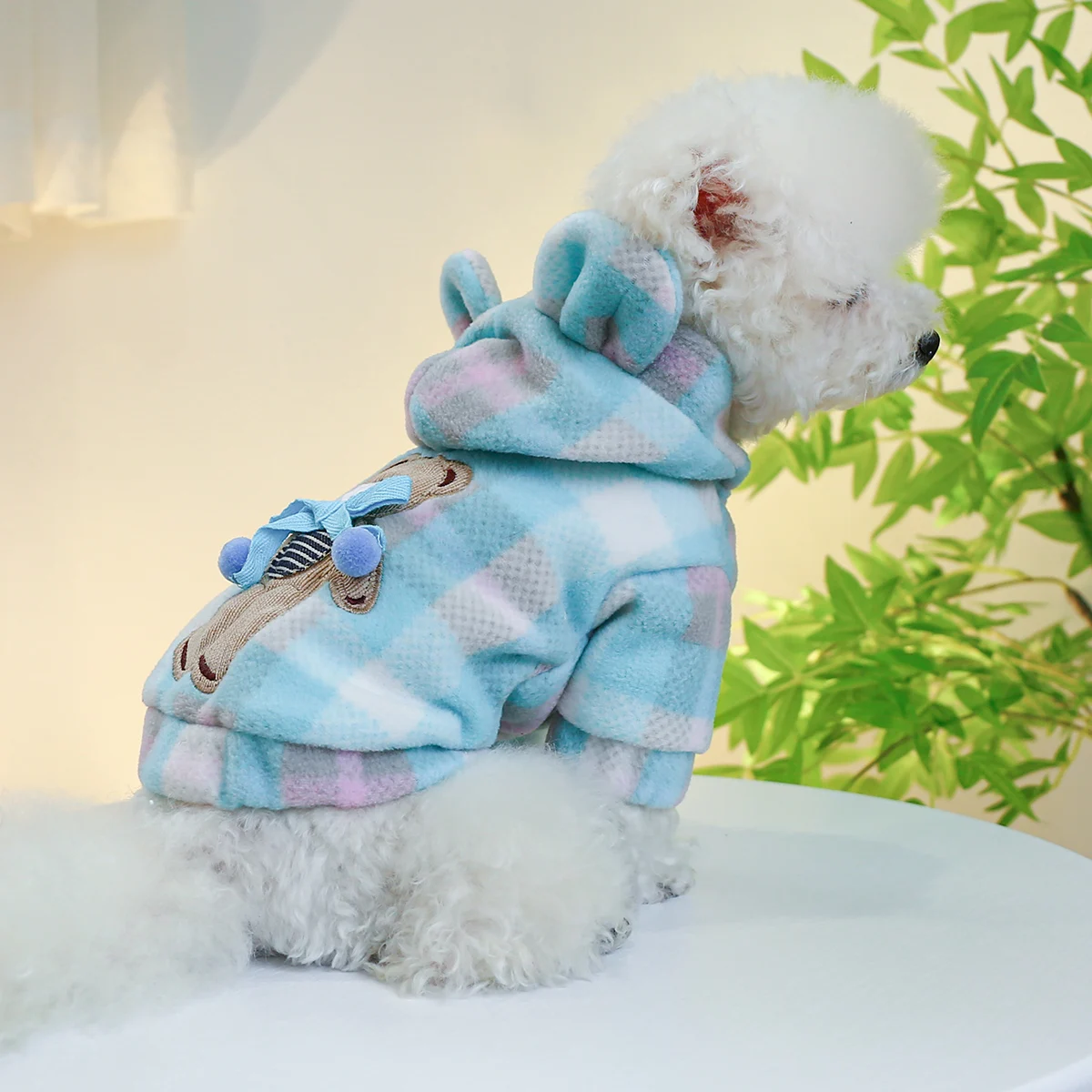 1PC Pet Apparel Cat Dog Autumn and Winter Thickened Warm Plaid Scarf Bear Hat Coat With Drawstring Buckle For Small Medium Dogs
