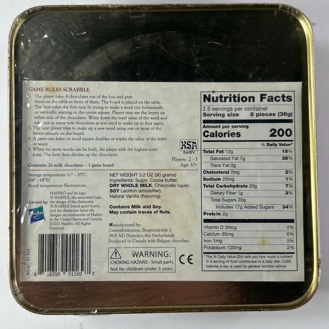 This 3.2-ounce delight is a delectable treat for Scrabble enthusiasts. Encased in a sealed package, this limited-edition chocolate combines the joy of gaming with the pleasure of rich milk chocolate.