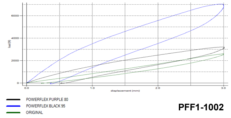 Powerflex-Buchsen bestehen aus einer technologisch fortschrittlichen Polyurethan-Kunststoffverbindung. Diese Verbindung überwindet das häufige Problem, das mit härteren Buchsen einhergeht, nämlich die erhöhte Geräuschentwicklung. Durch die richtige Konstruktion können die Buchsen aus Polyurethan-Verbundwerkstoff 25–30 % steifer als Gummibuchsen gemacht werden, jedoch mit genau den gleichen Geräuschabsorptionseigenschaften. Im Gegensatz zu Poly-Buchsen alter Technologie ist jede Zunahme der Vibrationen/Härte, die im Fahrzeug spürbar ist, normalerweise nicht wahrnehmbar.