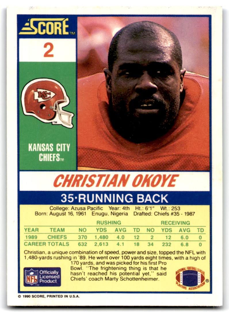 | 1990 Score Christian Okoye Kansas City Chiefs #2 |