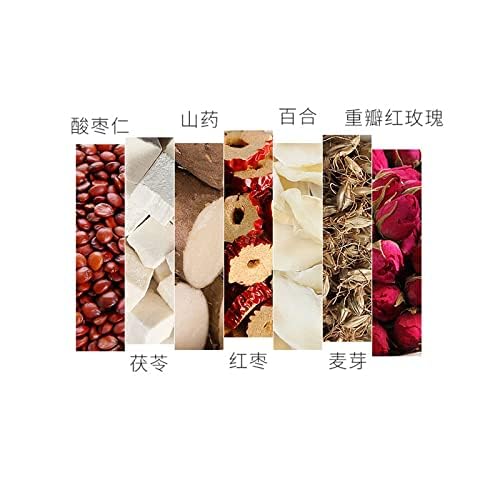 Raw material: spina date seed, Tuckahoe, Chinese yam, red jujube, lily, double red rose, malt Origin: China Storage method: please store in a cool and dry place