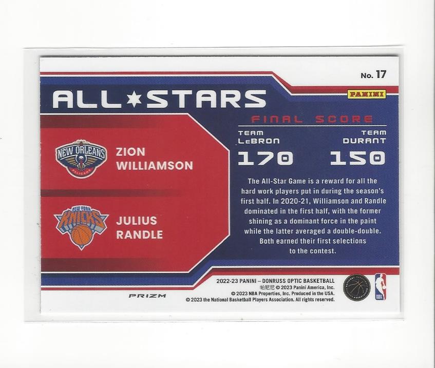 2022-23 Optic All-Stars Holo #17 Julius Randle/Zion Williamson Knicks Pelicans
