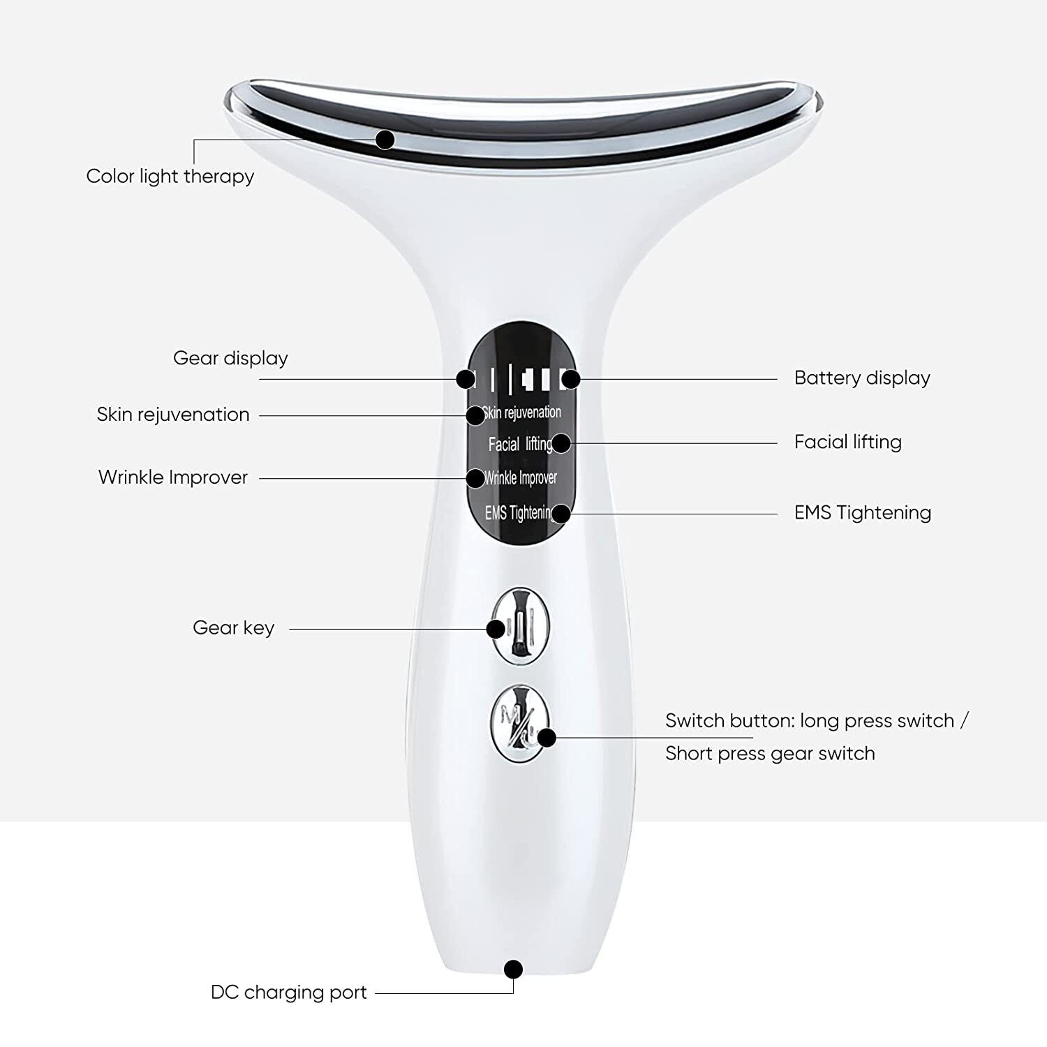 1. Neck beauty device that can be used on both the neck and face to effectively lift and firm the skin, reduce facial wrinkles, fine lines and neck lines, and is designed to give you a swan neck.