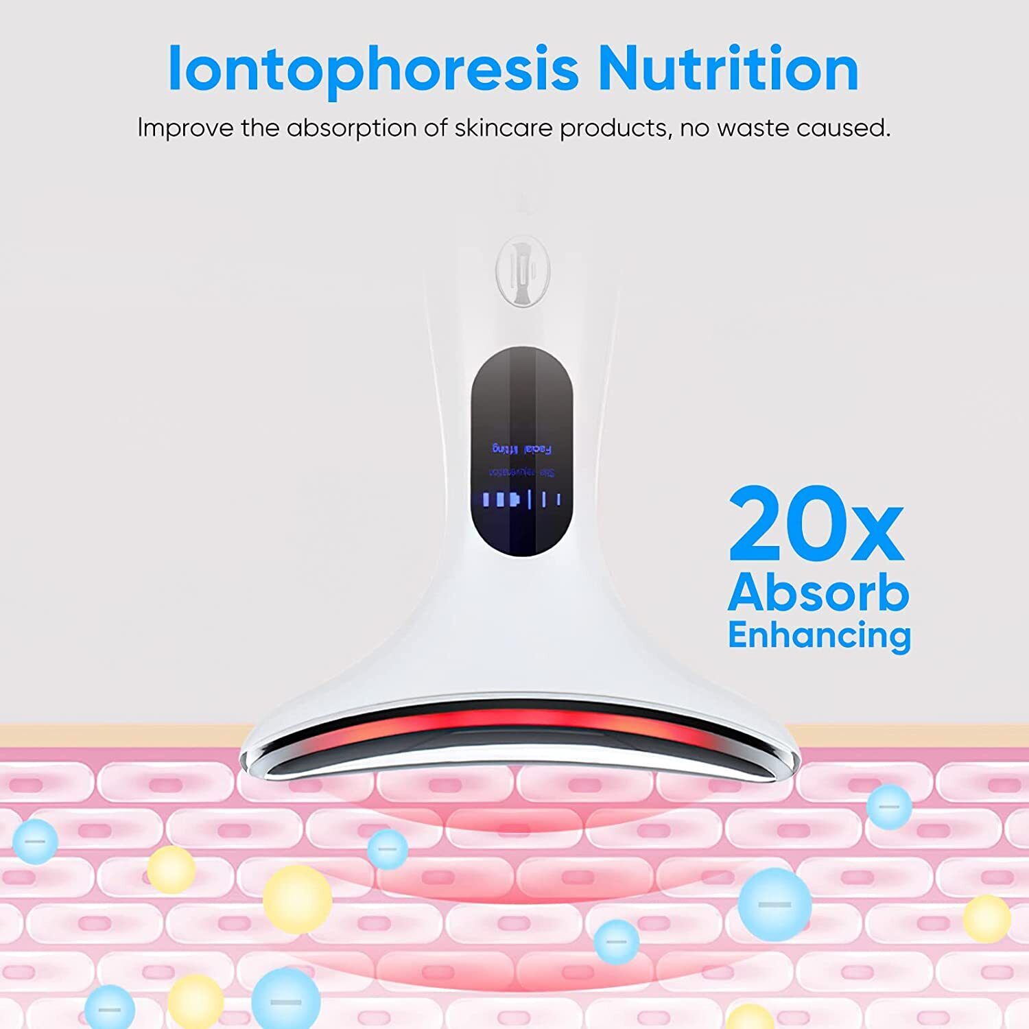 5. Positive and negative ions are efficiently introduced into nutrients to improve the absorption efficiency of nutrients by the skin. When used with neck cream and neck mask, the effect is doubled.