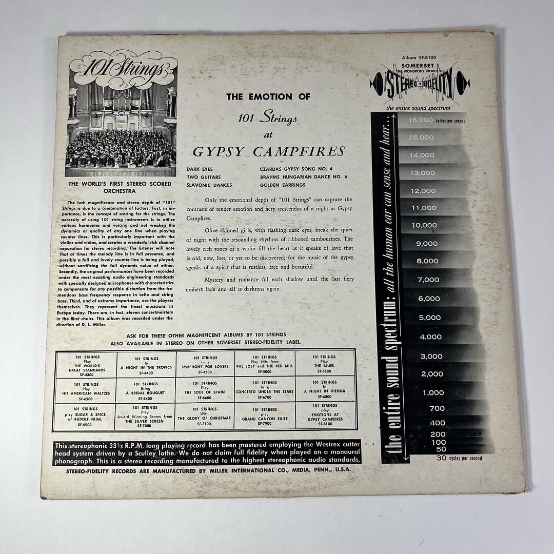 This is a vinyl LP record titled "Gypsy Campfires" by 101 Strings, released in 1958 by Somerset Records in the United States.